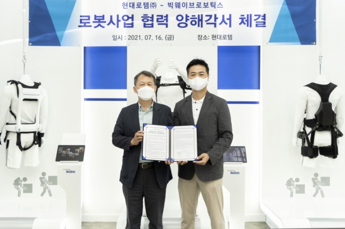 국내 최대 로봇 자동화 인공지능(AI) 추천 플랫폼 '마로솔'을 운영하는 빅웨이브로보틱스는 국내 웨어러블(외골격 슈트) 로봇기업 현대로템과 '웨어러블 로봇 보급확산을 위한 업무협약'을 체결했다고 16일 밝혔다.