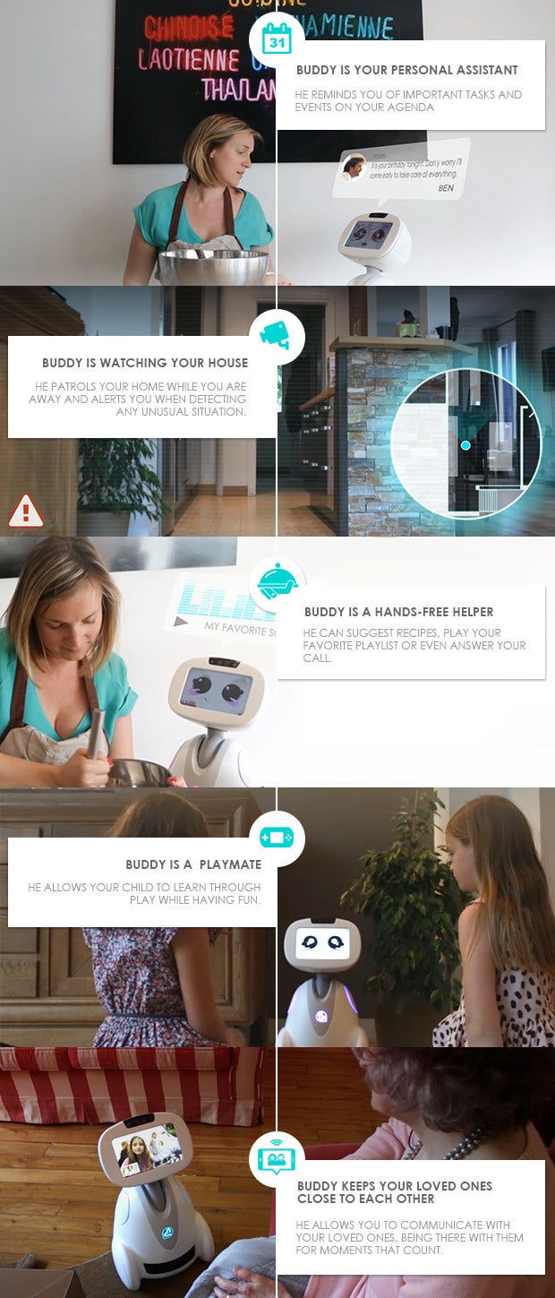 집안을 돌아다니는 자율 주행 기능은 물론이고 홈시큐리티, 스마트 홈 컨트롤, 비디오 및 사진 촬영, 화상 통화, 게임, 교육, 알람, 스케쥴까지 버디의 능력은 끝이 없네요. 거기에 깜찍한(?) 외모는 덤입니다. 인형이나 레고 같은 장난감만 좋아하던 아이들도 버디를 만나게 되면 신세계를 경험할지도 모르겠습니다.
