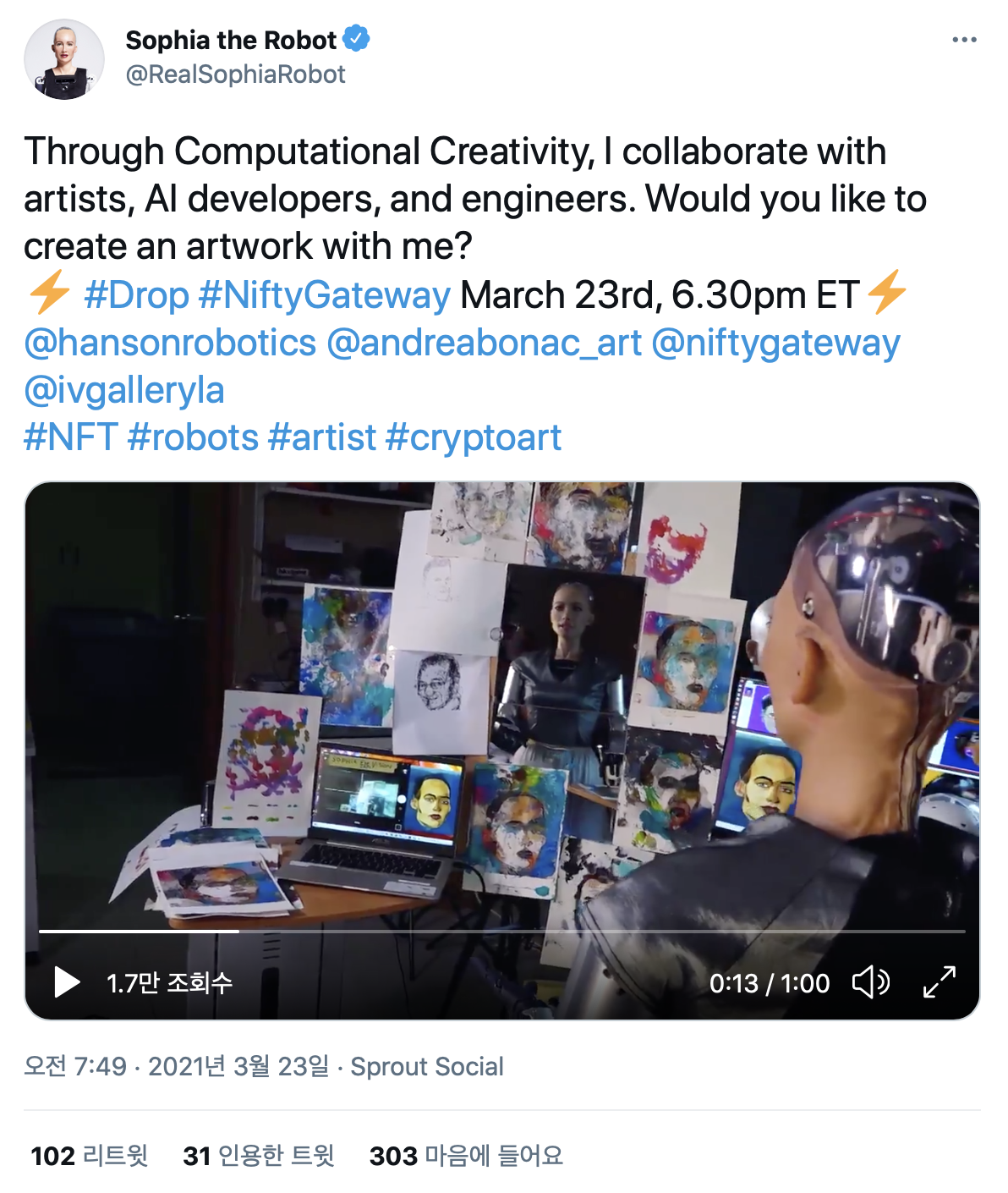 미술 계까지 손을 뻗은 인공지능은 이제 어디까지 진출하게 될까요? 소피아의 그림 작업이 궁금하시다면 위 동영상 링크를 한번 클릭해 보세요 :)