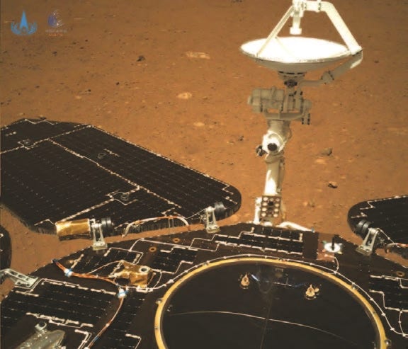 로봇이 보내준 사진에는 착륙선과 주룽의 모습이 선명하게 나타났습니다.
