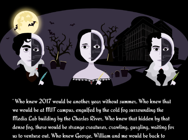 하는 생각에 시작되어 찾아보니, 실제로 소설을 쓰는 로봇 (인공지능) 이 개발되었다고 합니다. 그 주인공은 지난 2017년 MIT 공대에서 만든 공포소설 AI 작가 '쉘리' 인데요. 쉘리의 이름은 다름 아닌 프랑켄쉬타인(Frankenstein)의 저자 '마리 쉘리(Mary Shelley)'에서 따왔다고 합니다.