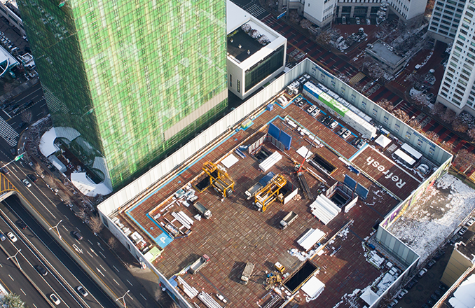 앞서 말했다시피, 100대의 로봇이 돌아다니며 클라우드 로봇 시스템으로 제어 되는 이 건물에서는 로봇과 사람이 함께 '공존'하고 '상생'하는 것이 주된 키워드입니다. 로봇 전용 공간들을 따로 내고 로봇 주행, 사고 방지 기술 , 5G 특화망을 통한 초저지연 통신 등 로봇을 제어하는 기술적 요소들까지 함께 담았는데요.