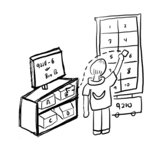 이렇게 빈이 채워지면 이미 운송장이 붙여진 빈 박스에 또 다른 작업자가 포장을 하게 되는건데요, 이런 방식으로 하니 사람이 카트 하나 끌고 큰 물류창고를 온종일 돌아다니며 상품을 하나 씩 모으지 않아도 되니, 주문 처리 시간이 3배 이상 줄어들게 됩니다.