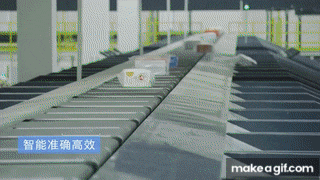 카이니아오 창고에서는 보시다시피 큰 로봇들이 컨베이어에 물품들을 하나하나 올려주고, 비전 센서를 이용해 행선지를 구별한 후 박스들을 구획에 떨어트려줍니다. 이렇게 1차 분류된 박스를 로봇이 도시락 통처럼 귀엽게 생긴 AGV에 올려주면 AGV가 달려가서 바닥의 구멍에 툭툭 떨어트려줍니다. 각각의 구멍들은 배달 구획 별로 지정된 배달 자루들이 연결되어 있죠.