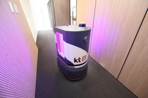 현재 KT 광화문 사옥의 이스트 동 1층과 13층에서 총 두 대가 활동중인데요. 주로 직원들이 없는 22시 이후와 점심시간 직후 정기 방역에 투입되며 13층의 80평 규모 사무실을 무려 약 14분만에 소독하는 놀라운 속도를 보여주었습니다.