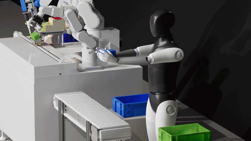 산업로봇과 휴머노이드 로봇을 하나의 공정 내에서 통합 운영하여 조립, 검사, 물류 작업을 연계한 고도화된 자동화 라인을 구현하였습니다.