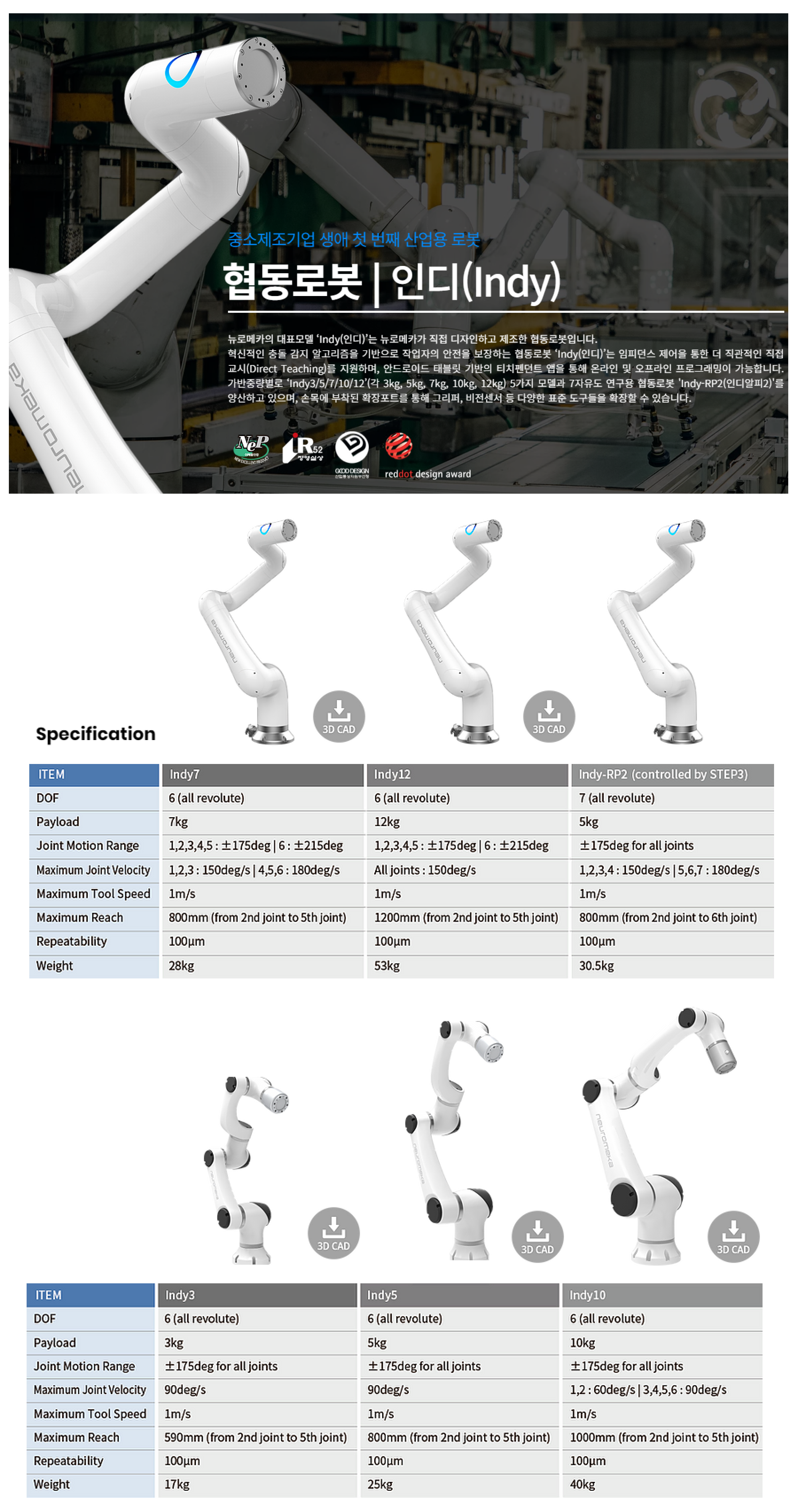 | 상품명(모델명) | 뉴로메카 Indy-RP2 (Pay load : 5kg Reach : 800 mm) | ||