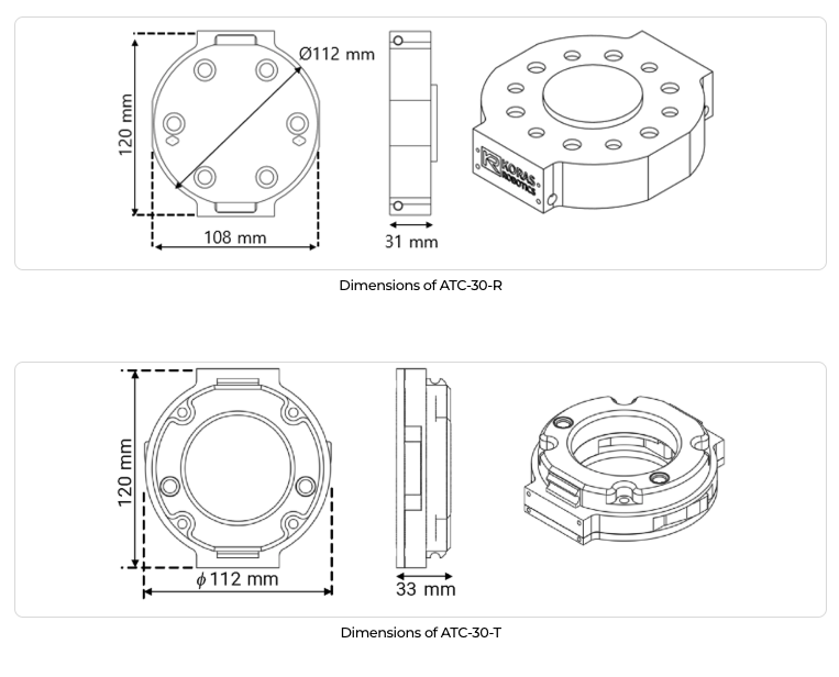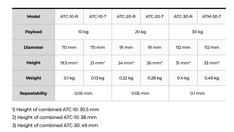 - 자동 툴체인저(ATC) 또는 퀵 체인저(quick changer)는 로봇측 유닛(ATC-R)과 툴측 유닛(ATC-T) 간의 결합-분리를 통해서 로봇 팔이 다양한 툴을 교체할 수 있도록 해주는 장치임.