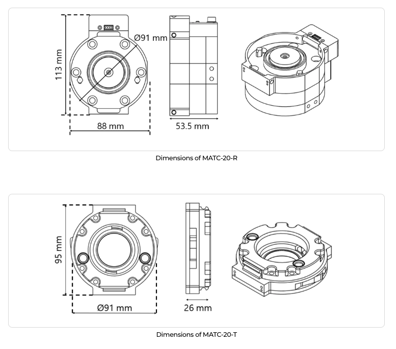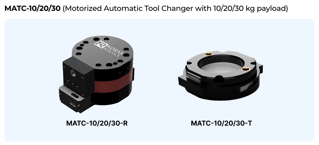 - MATC는 로봇 측 유닛(MATC-R)에 모터와 제어기로 구성되는 구동부를 내장하여 툴측 유닛(MATC-T)이 부착되는 모든 툴에 모터 회전 동력을 제공하여 줄 수 있는 Motorized ATC임.
