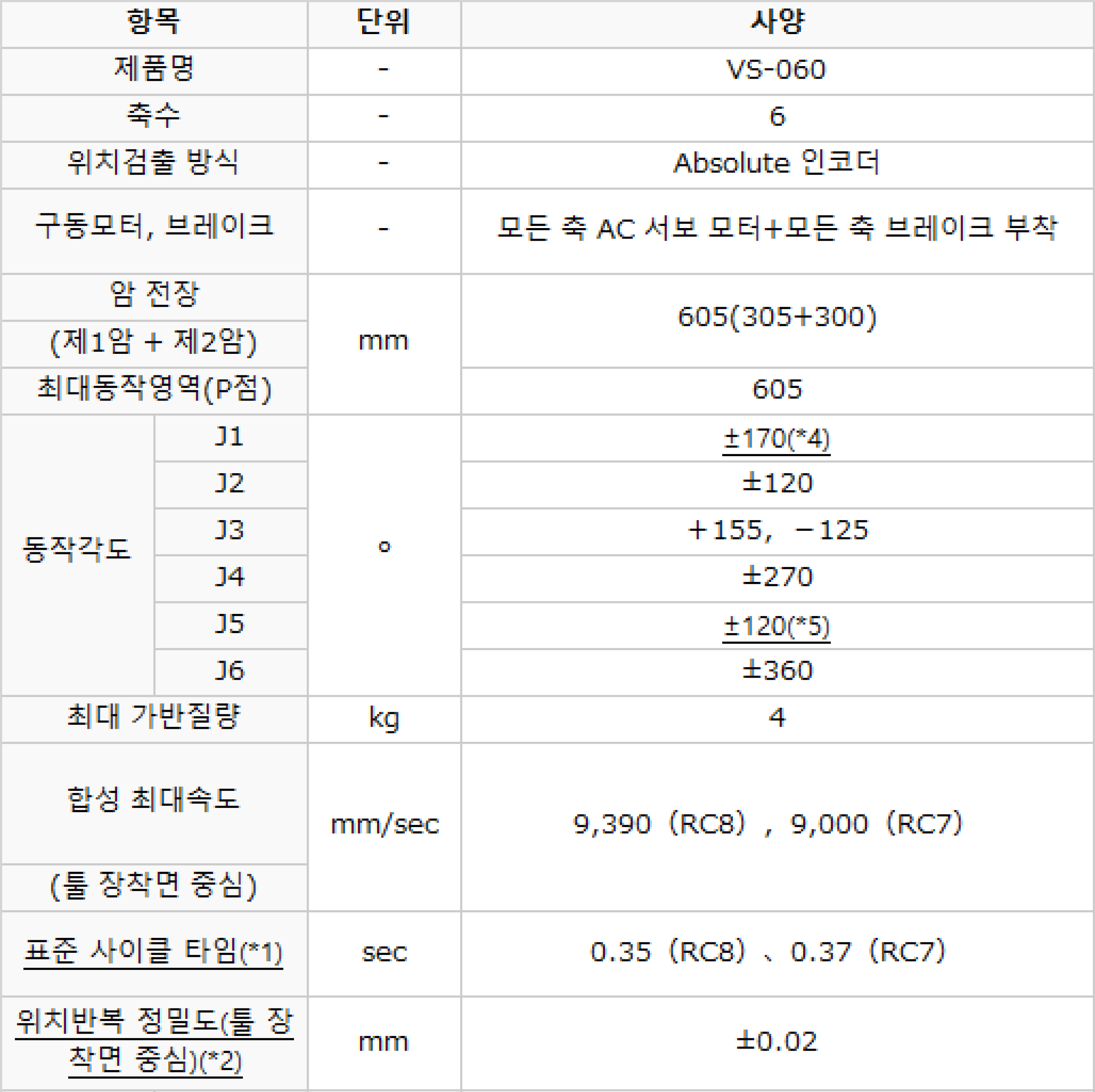 | 상품명(모델명) | DENSO VS-060 (Payload : 4kg, Reach : 605mm) | ||