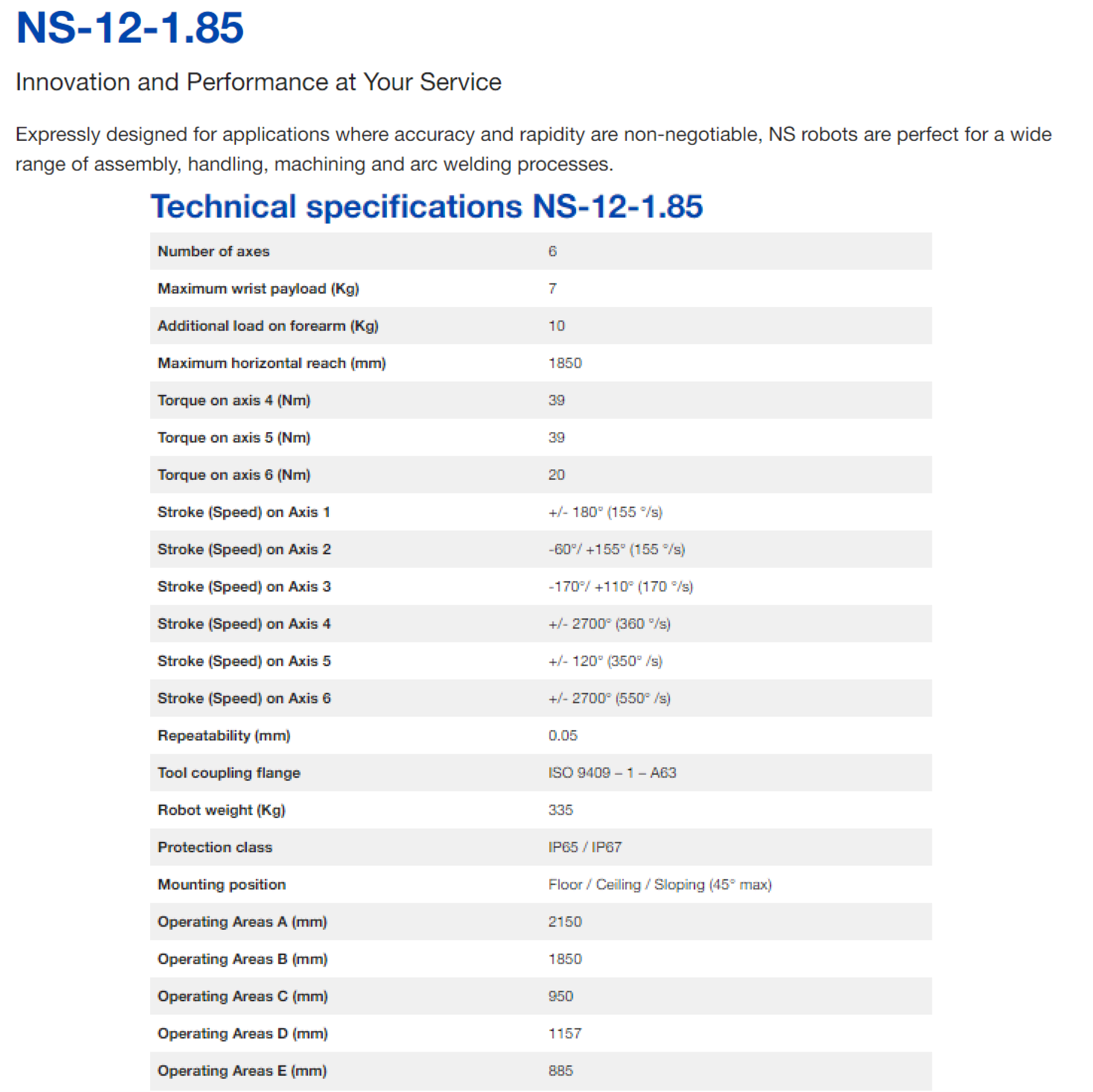 | 상품명(모델명) | Comau NS-12-1.85 (Payload : 7kg, Reach : 1850mm) | ||