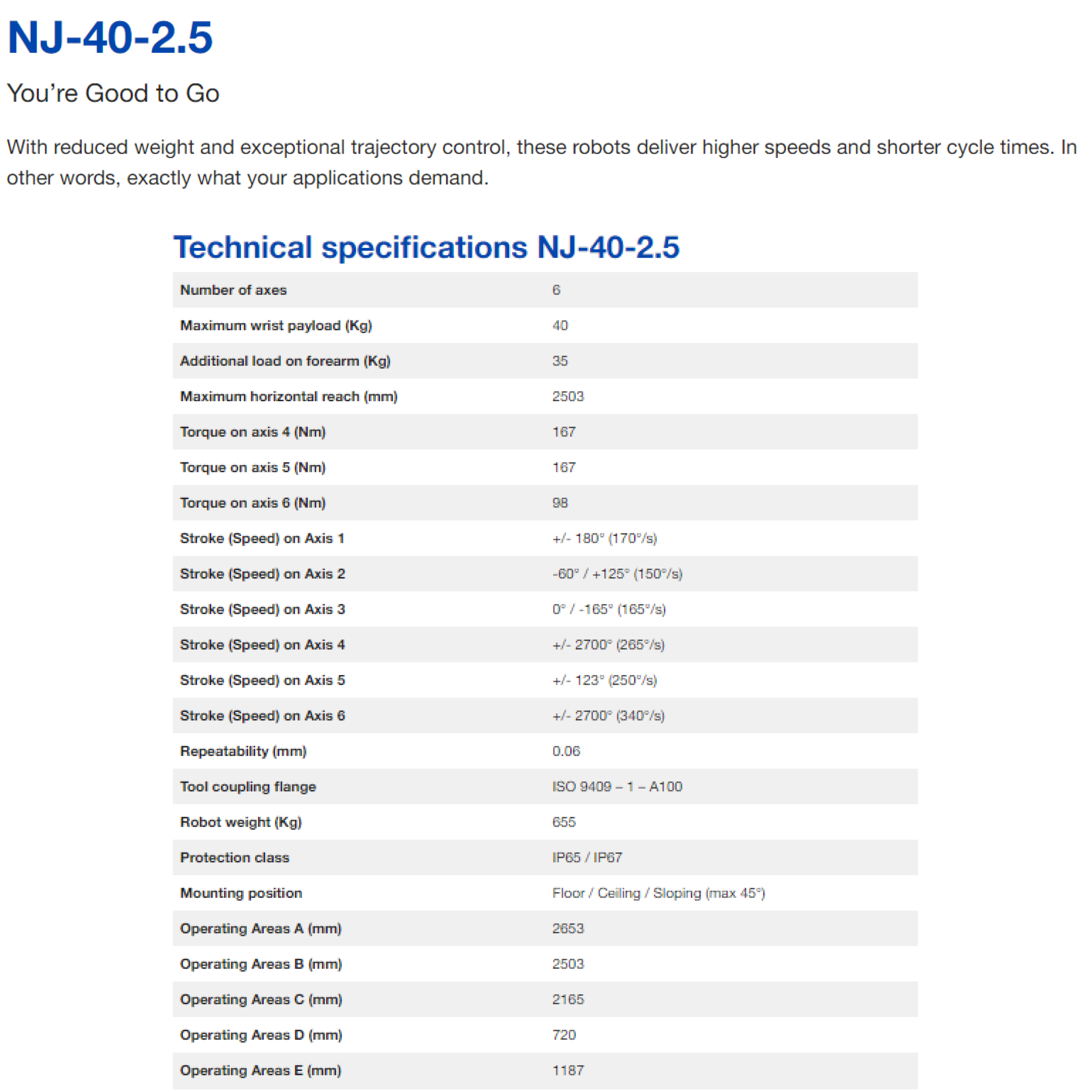 | 상품명(모델명) | Comau NJ-40-2.5 (Payload : 40kg, Reach : 2503mm) | ||