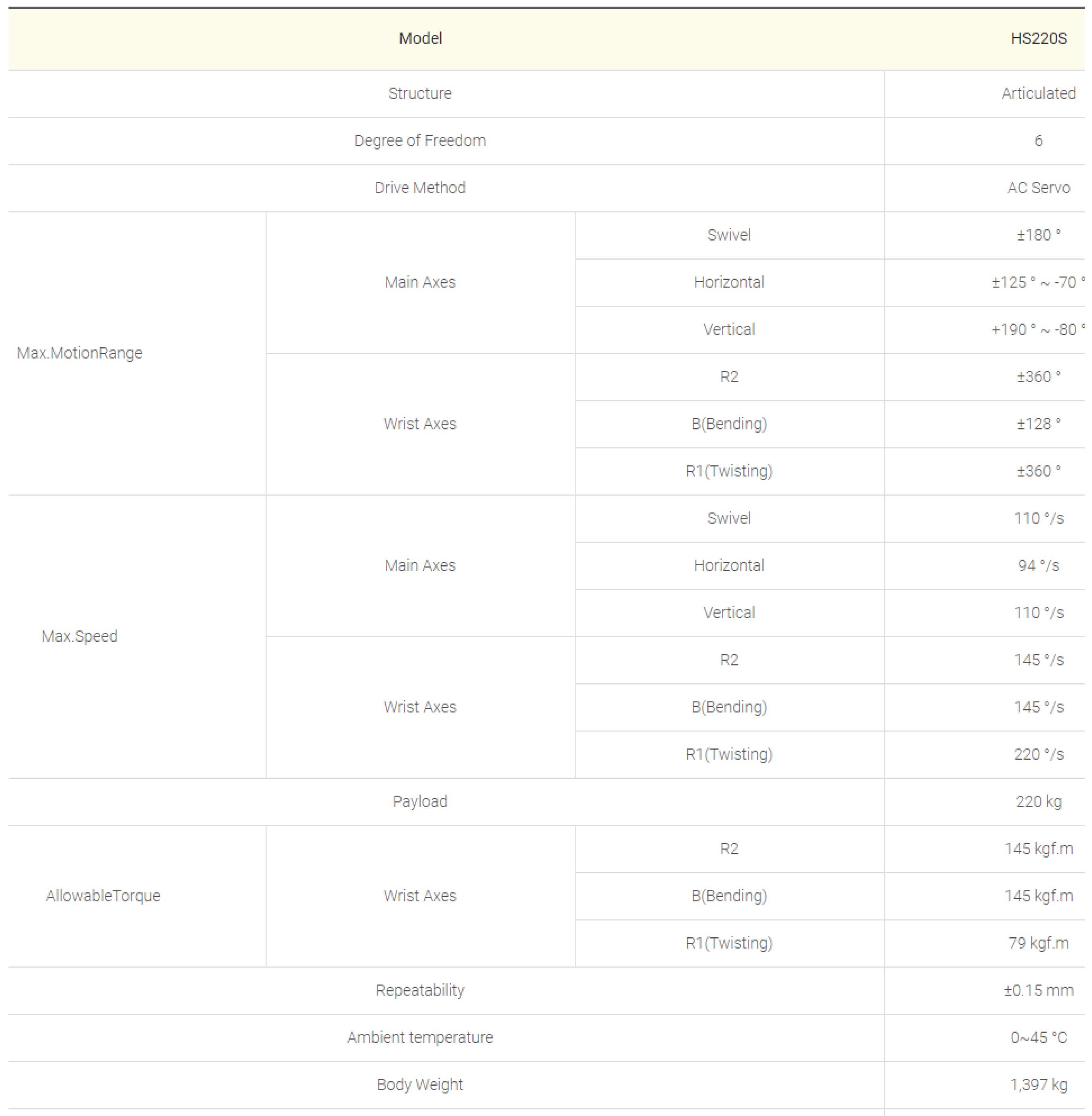 | 상품명(모델명) | 현대로보틱스 HS220S(HDR220S-30) (Pay load : 220kg Reach : 3,091mm) | ||