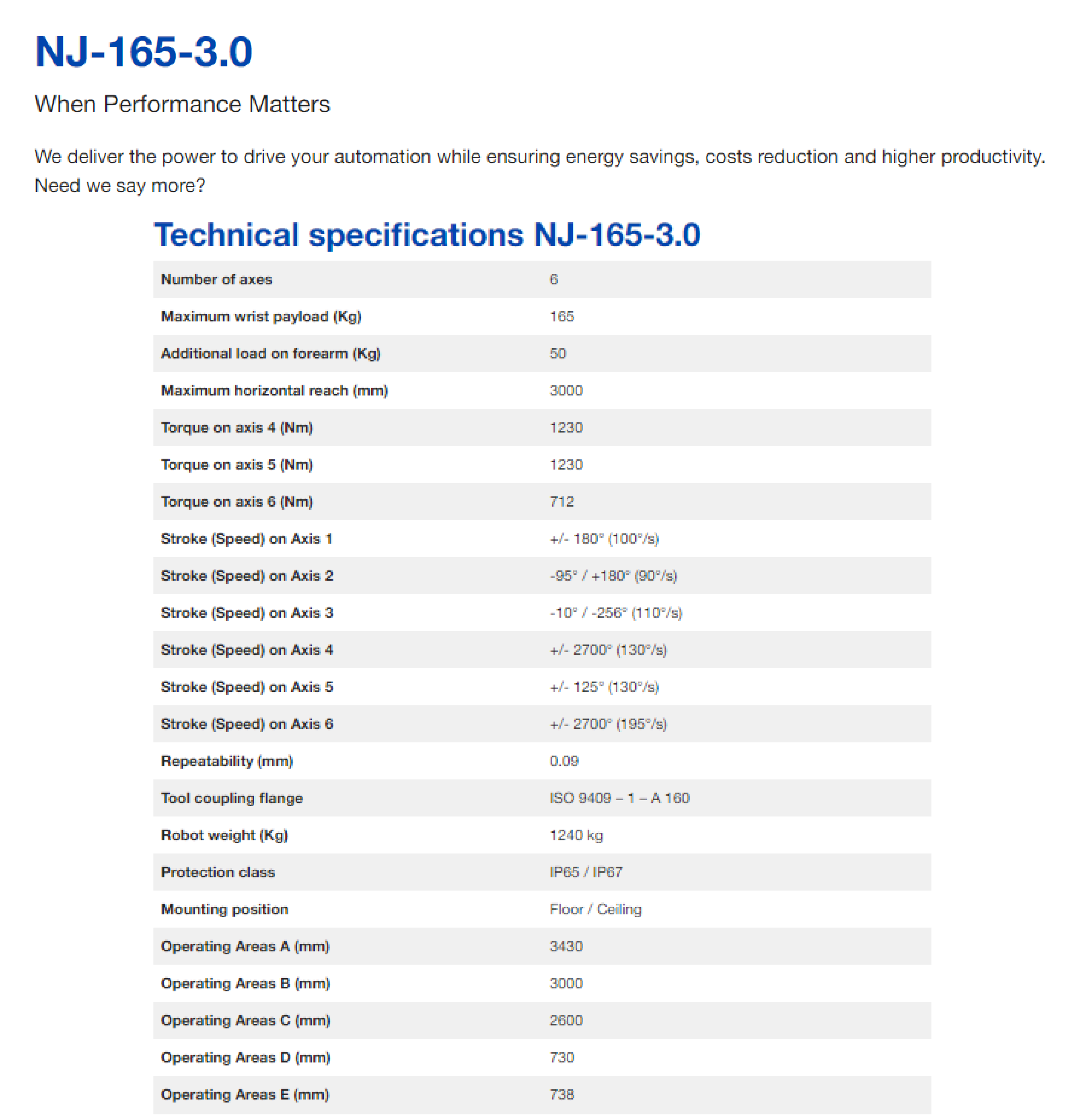 | 상품명(모델명) | Comau NJ-165-3.0 (Payload : 165kg, Reach : 3000mm) | ||