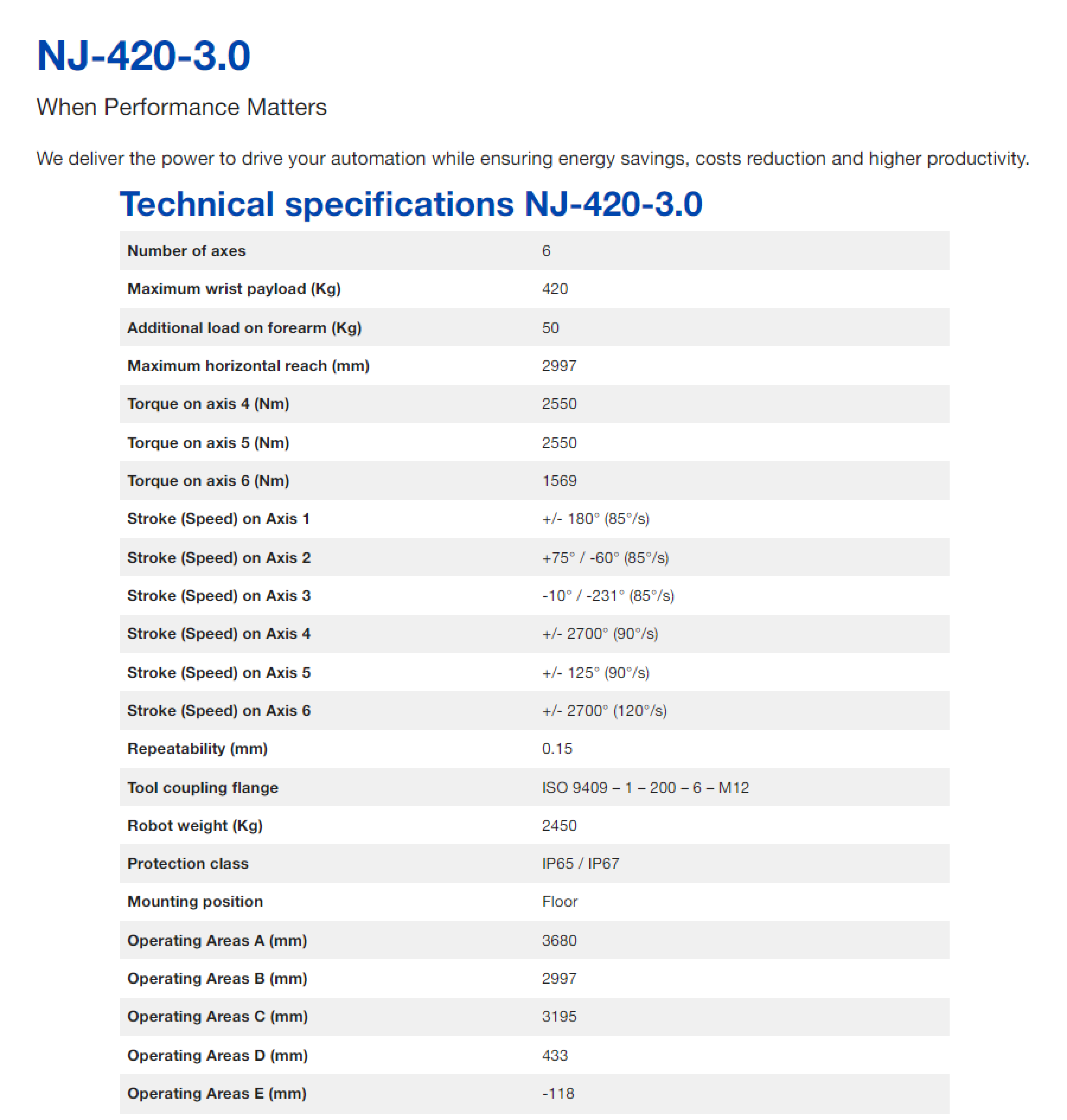 | 상품명(모델명) | Comau NJ-420-3.0 (Payload : 420kg, Reach : 2997mm) | ||