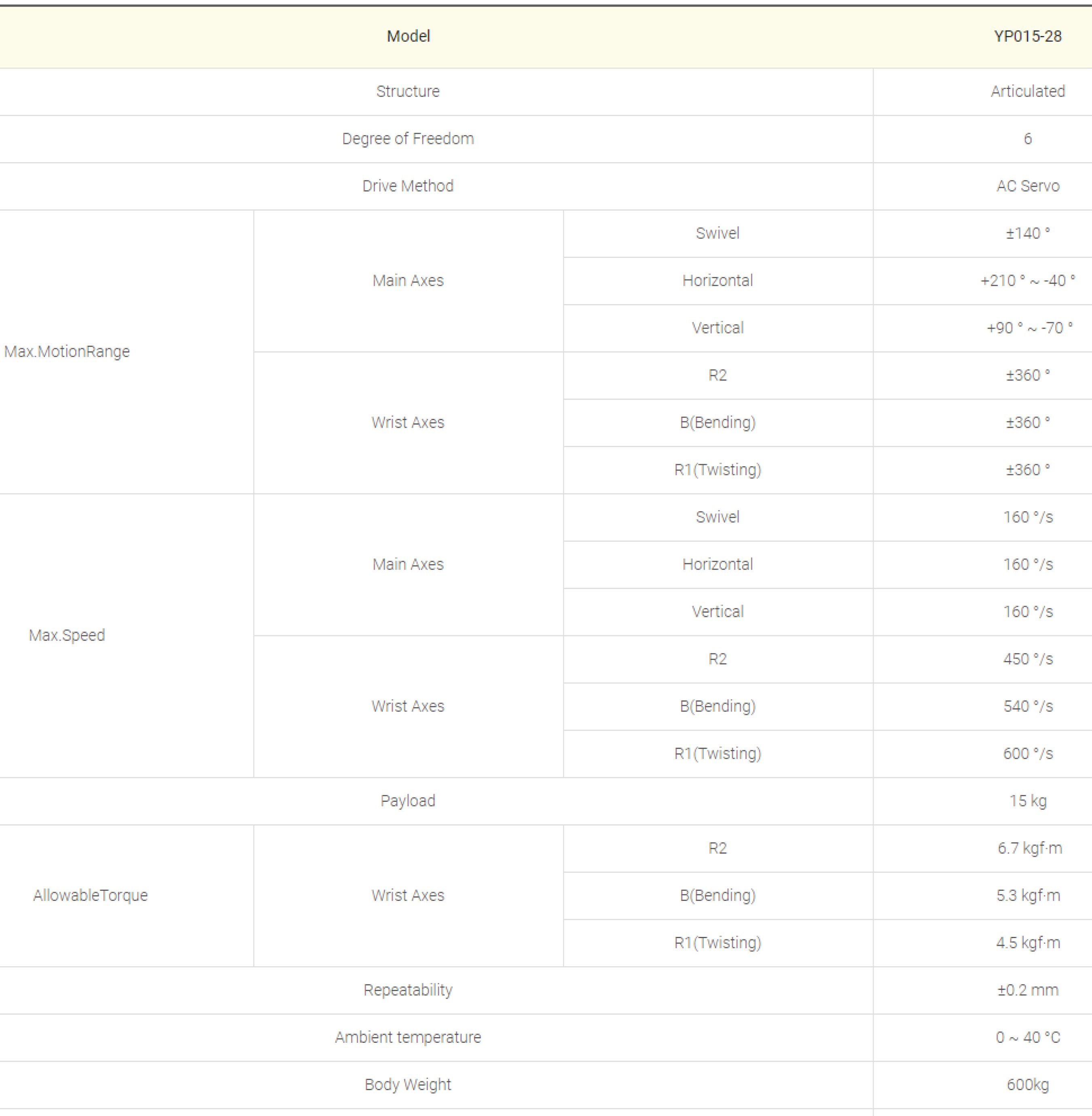 | 상품명(모델명) | 현대로보틱스 YP015A-28 (Pay load : 15kg Reach : 2,800mm) | ||