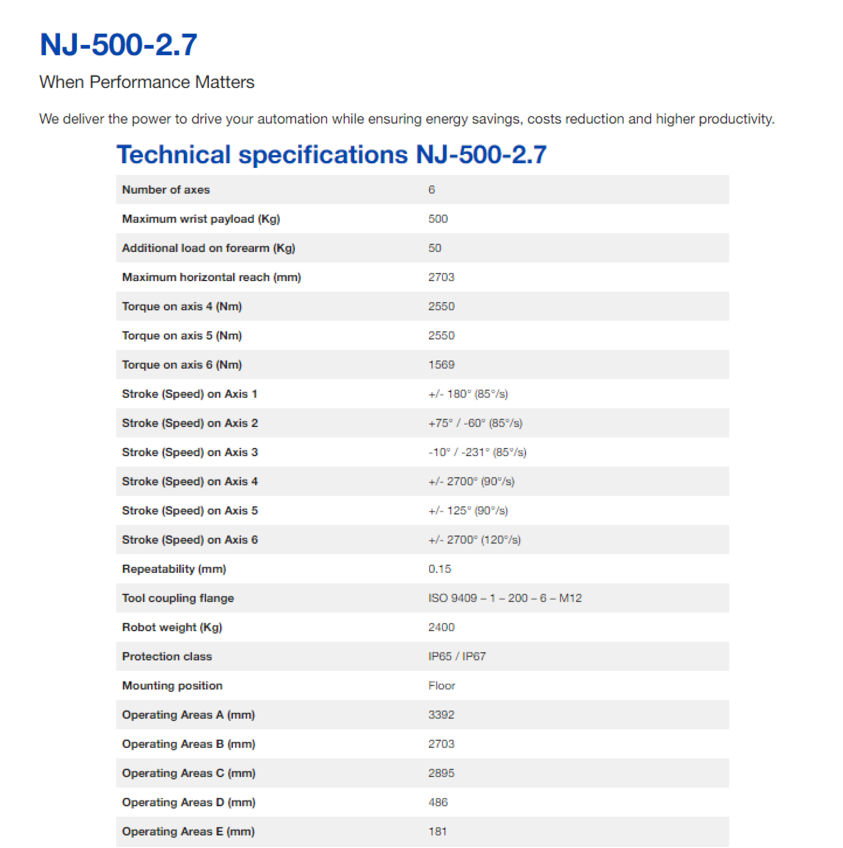 | 상품명(모델명) | Comau NJ-500-2.7 (Payload : 500kg, Reach : 2703mm) | ||