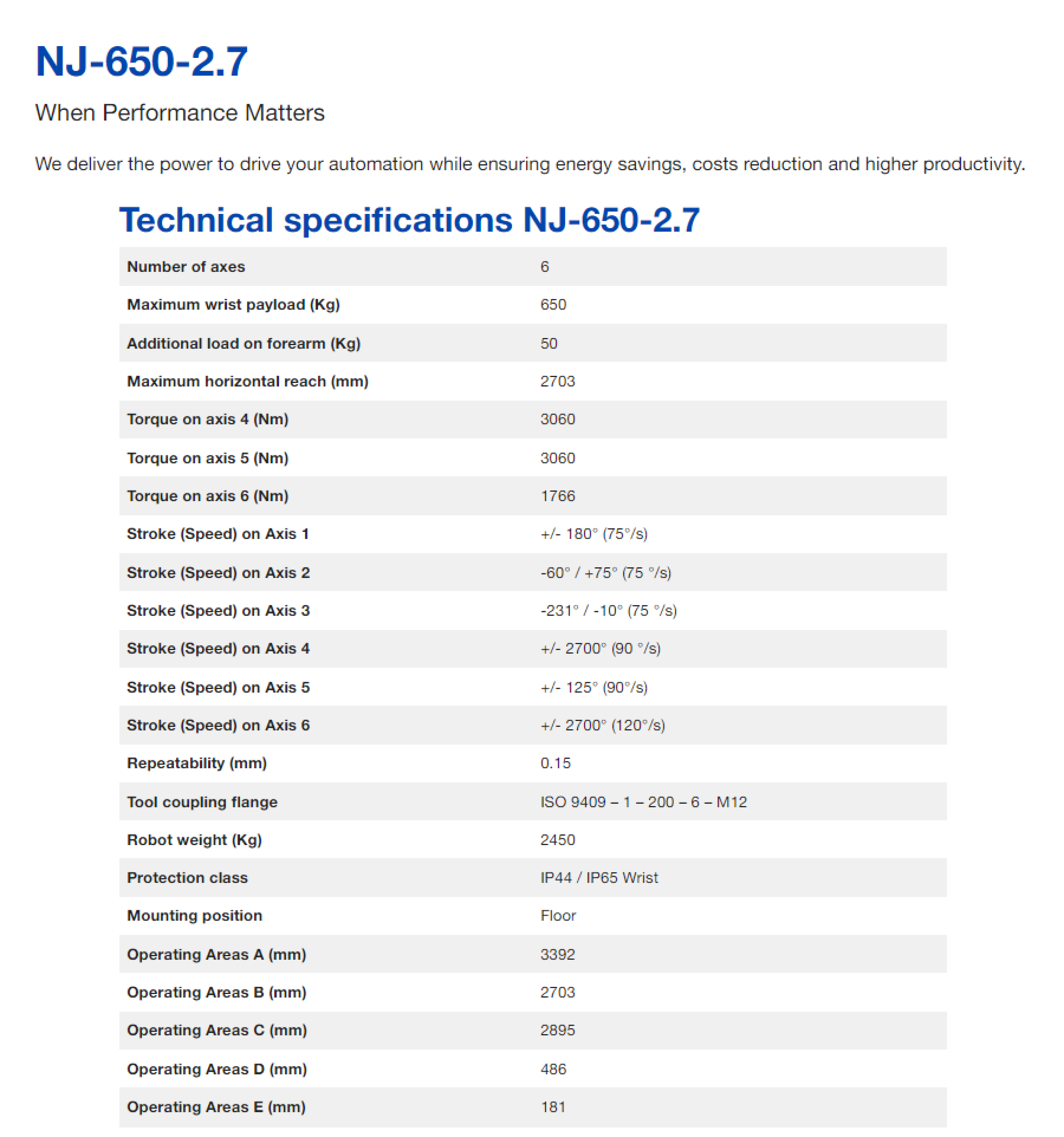 | 상품명(모델명) | Comau NJ-650-2.7 (Payload : 650kg, Reach : 2703mm) | ||