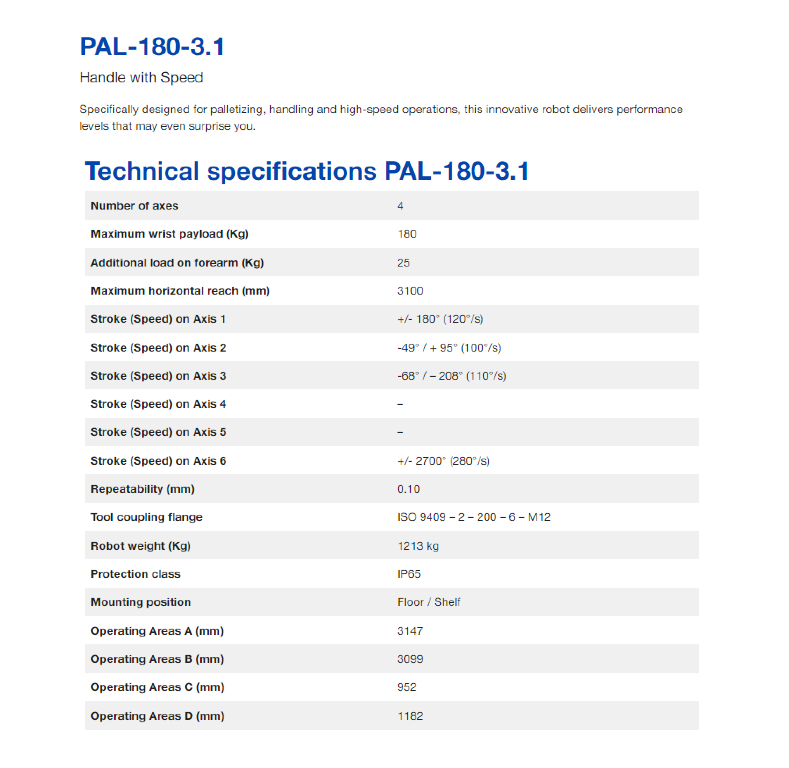 | 상품명(모델명) | Comau PAL-180-3.1 (Payload : 180kg, Reach : 3100mm) | ||