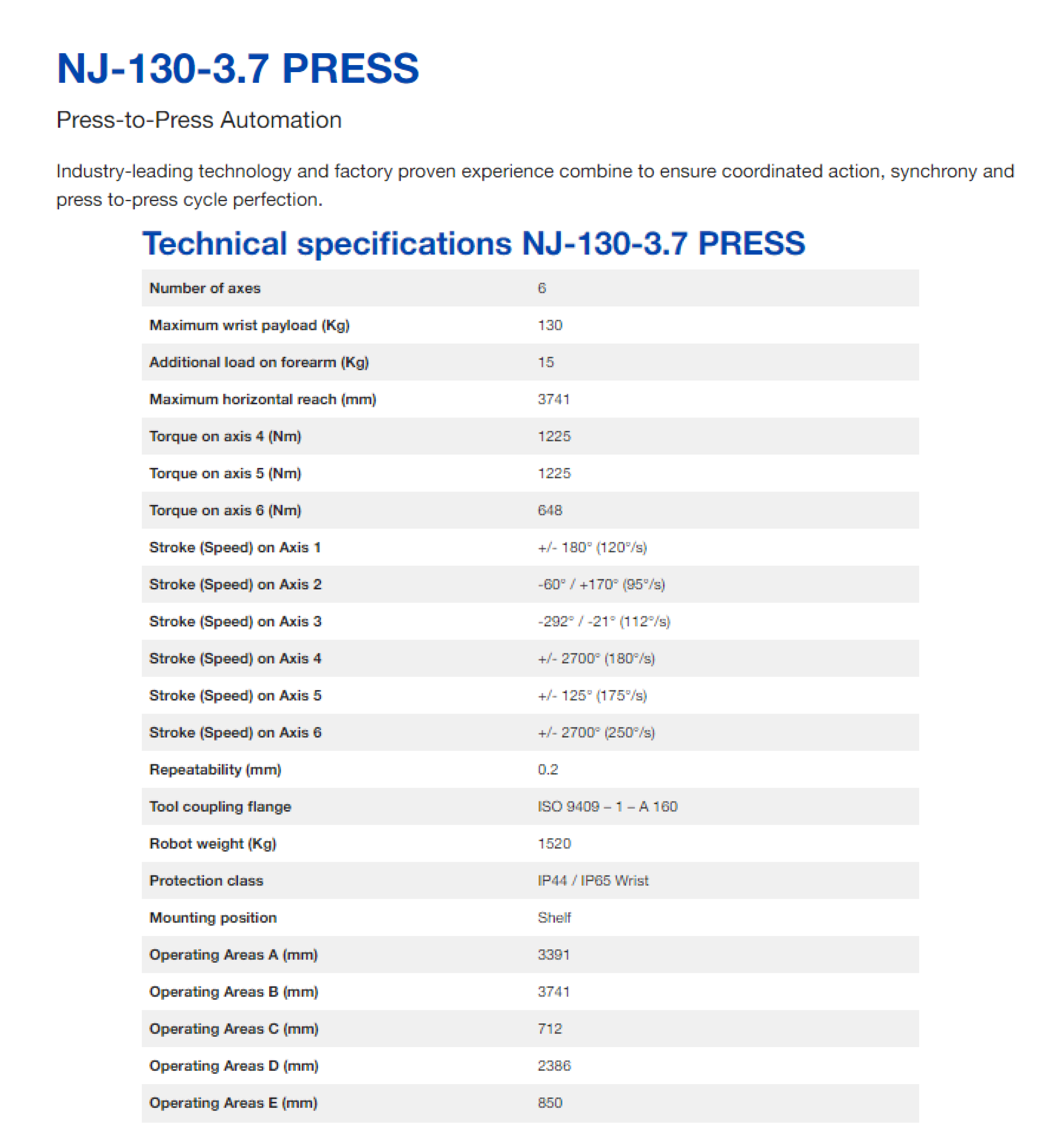 | 상품명(모델명) | Comau NJ-130-3.7 (Payload : 130kg, Reach : 3741mm) | ||