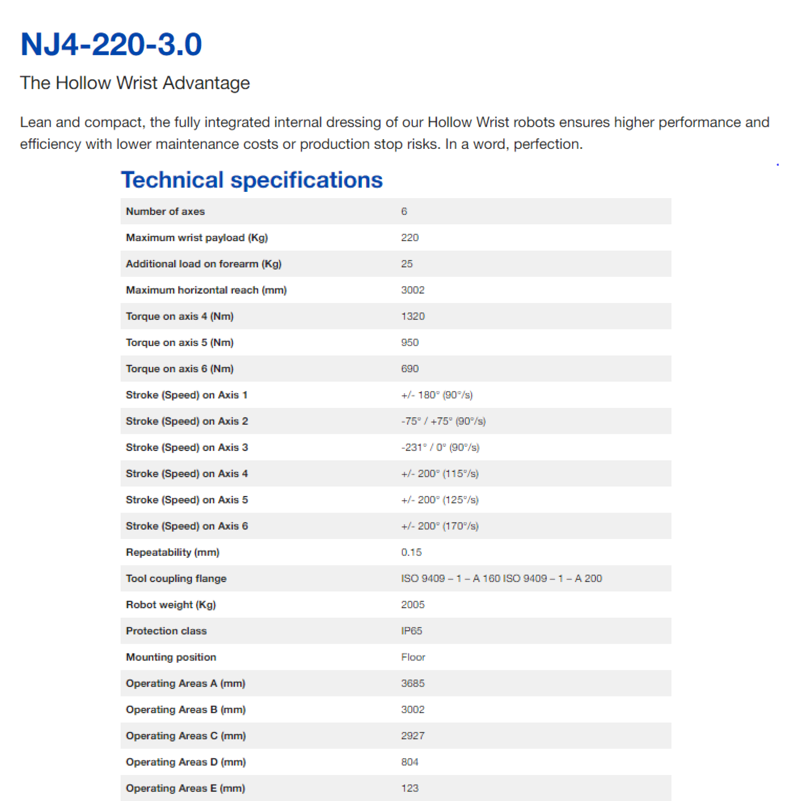 | 상품명(모델명) | Comau NJ4-220-3.0 (Payload : 220kg, Reach : 3002mm) | ||