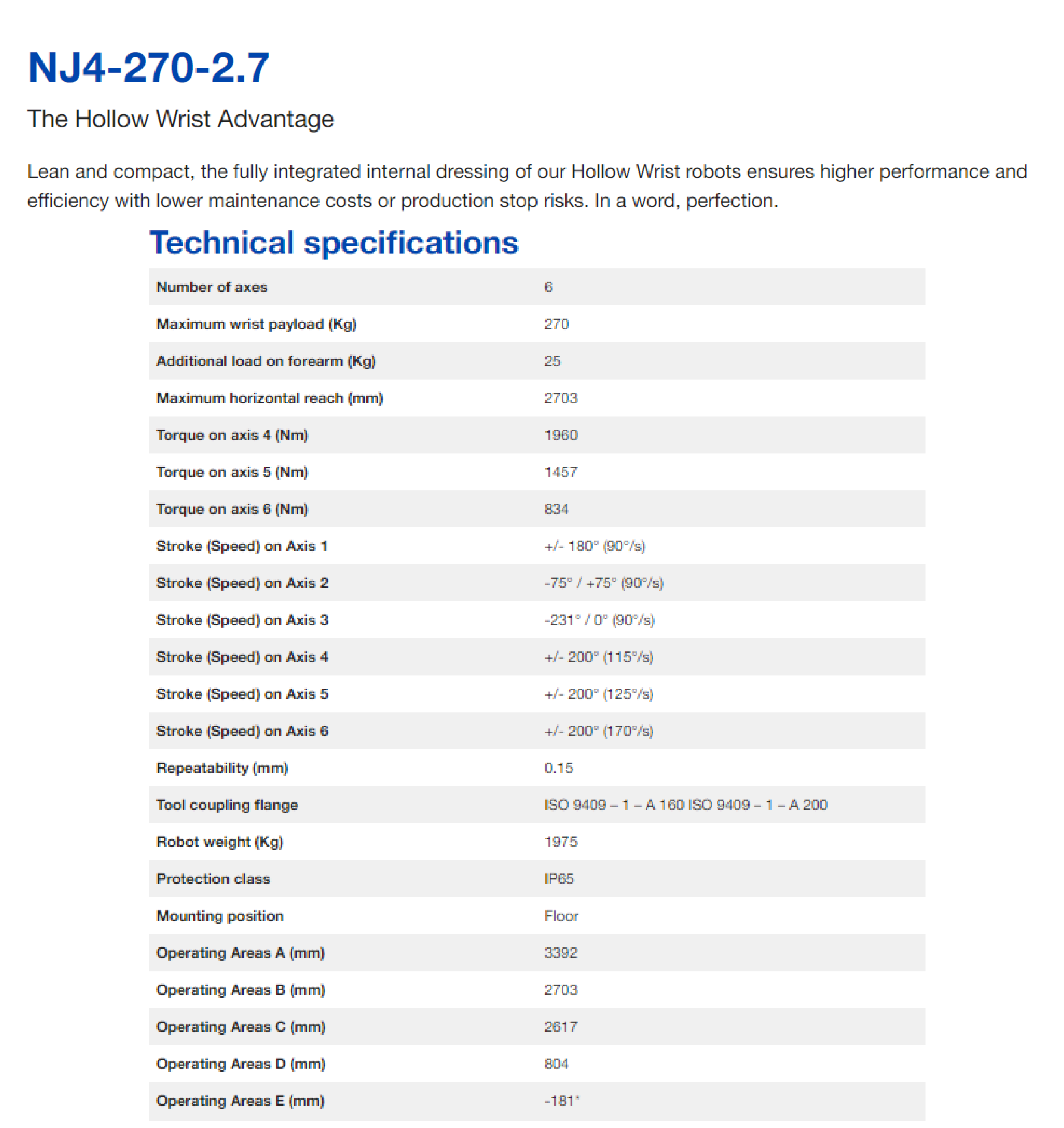 | 상품명(모델명) | Comau NJ4-270-2.7 (Payload : 270kg, Reach : 2703mm) | ||