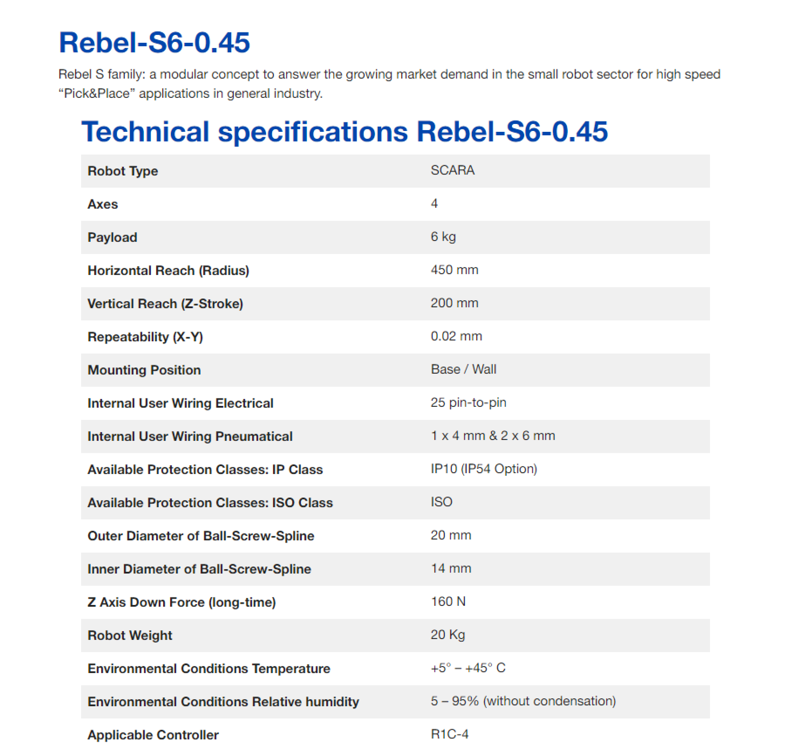 Comau Rebel-S6-0.45 (Payload : 6kg, Reach : 450mm)