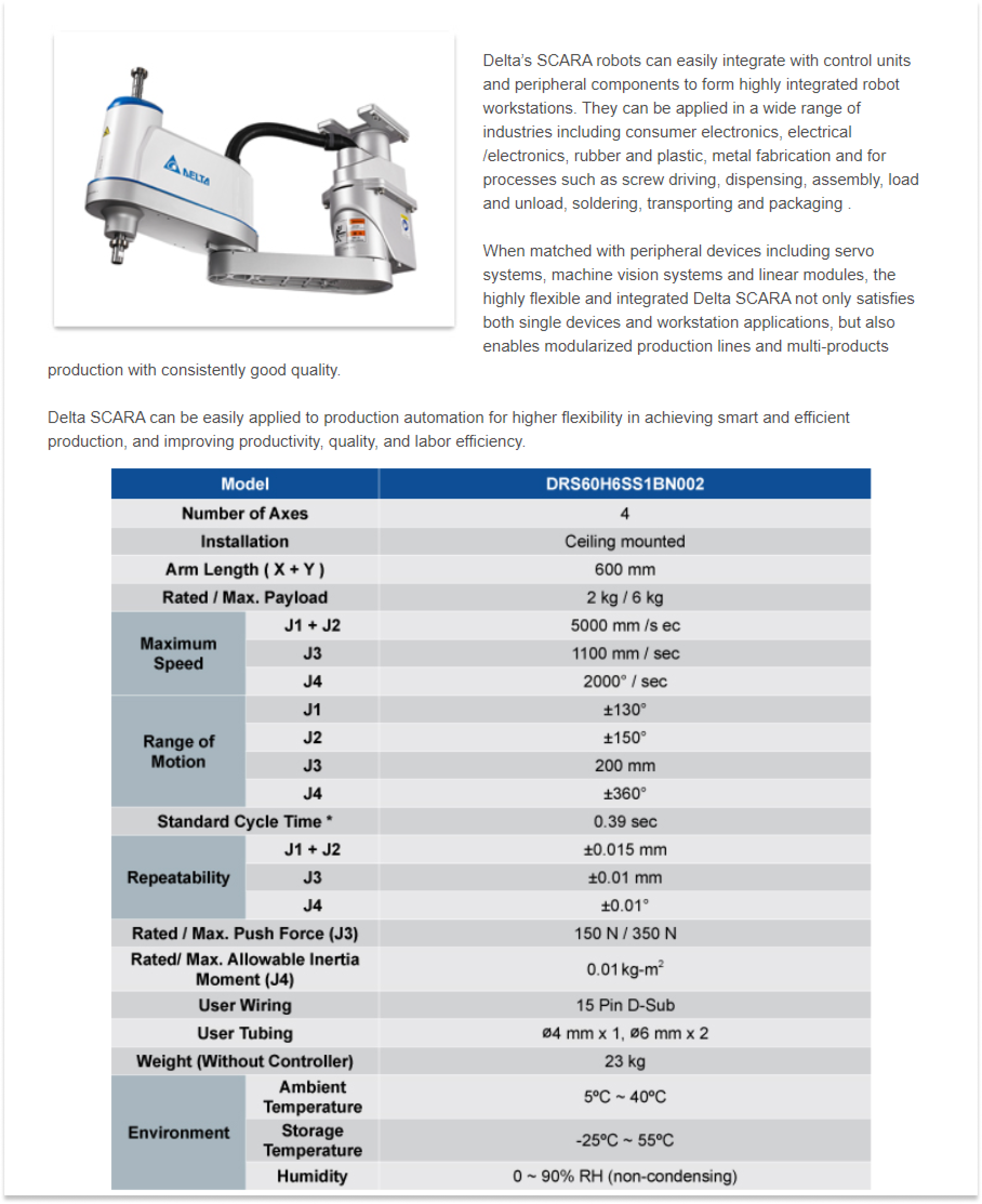 | 상품명(모델명) | DELTA DRS60H6 (Payload : 6kg, Reach : 600mm) | ||