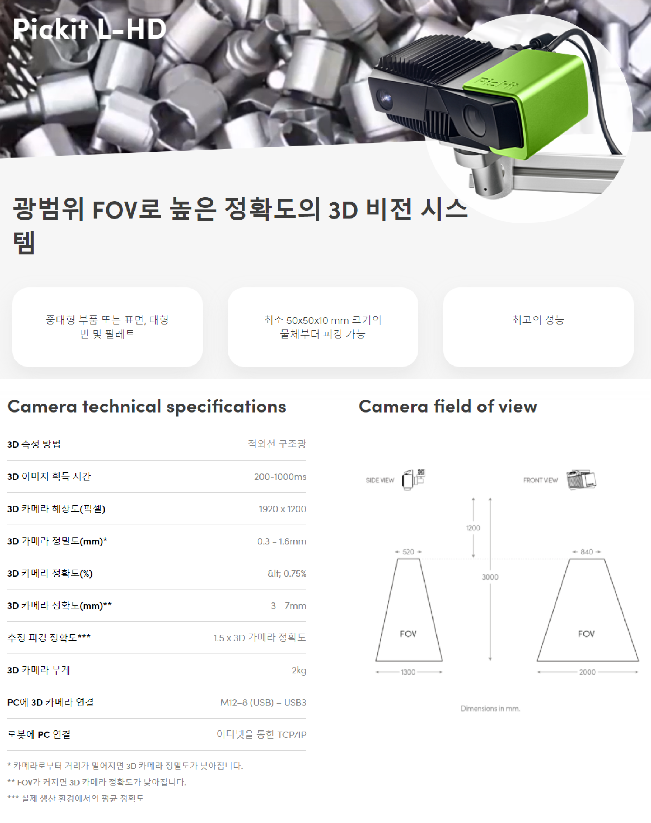 광범위 FOV로 높은 정확도의 3D 비전 시스템