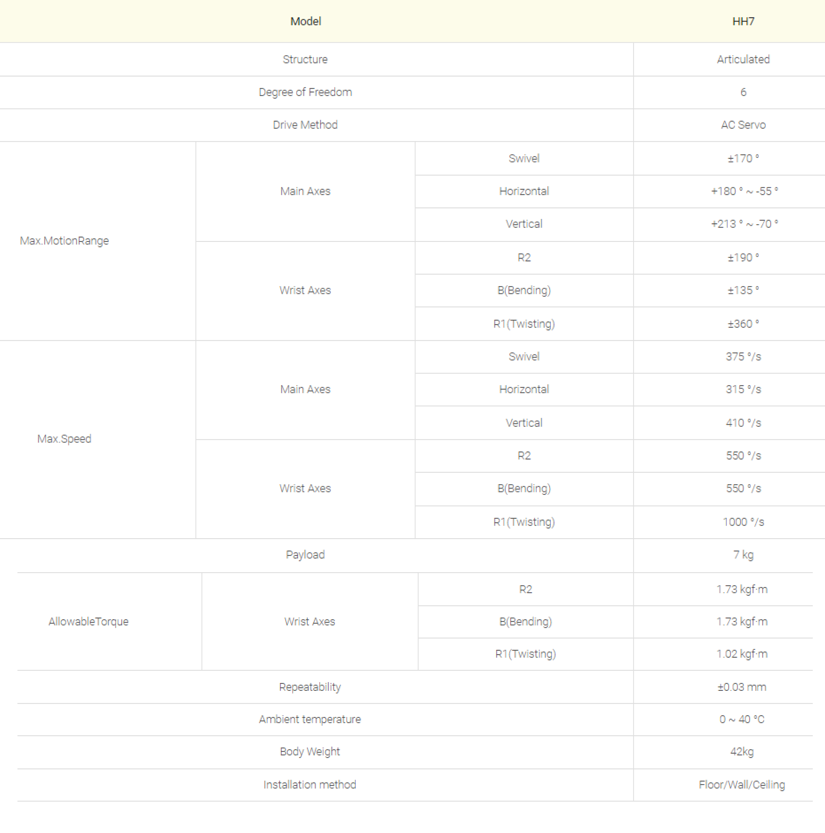 | 가반하중(Kg) | 7 | 작업반경(mm) | 932 |