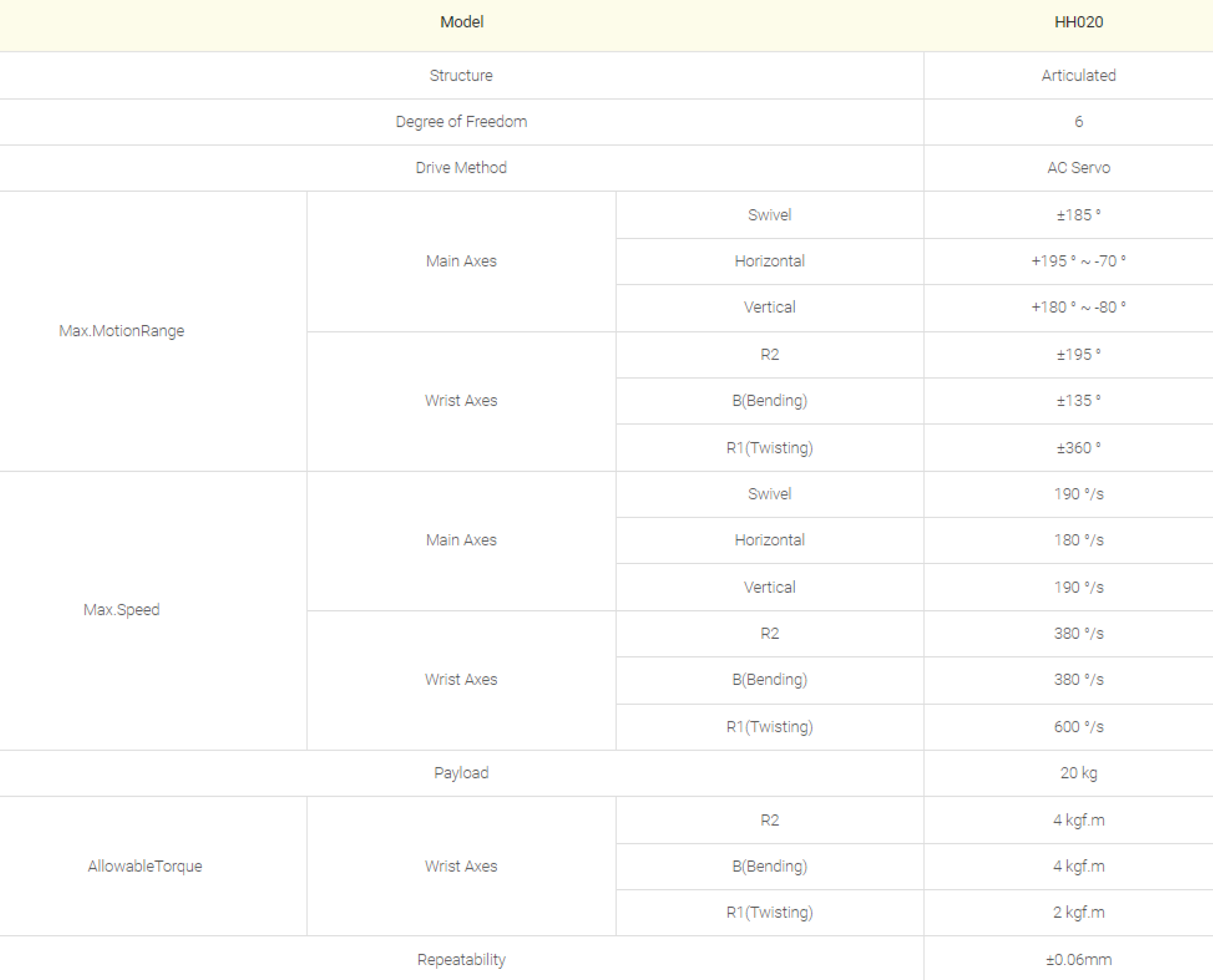 | 상세스펙 | 반복정밀도 ± 0.06mm | ||