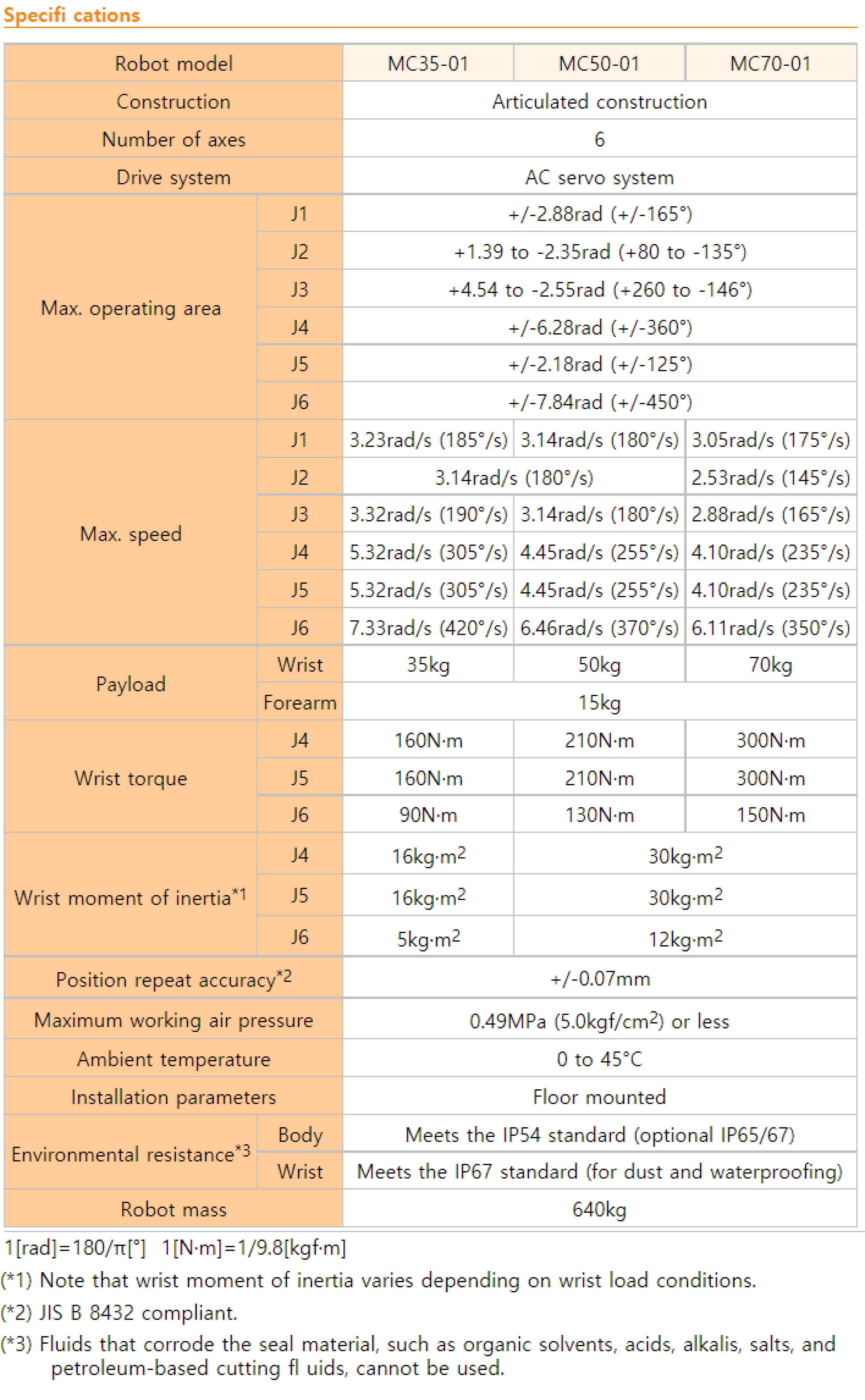 | 상품명(모델명) | NACHI MC70 (Payload : 70kg, Reach : 2,050 mm) | ||