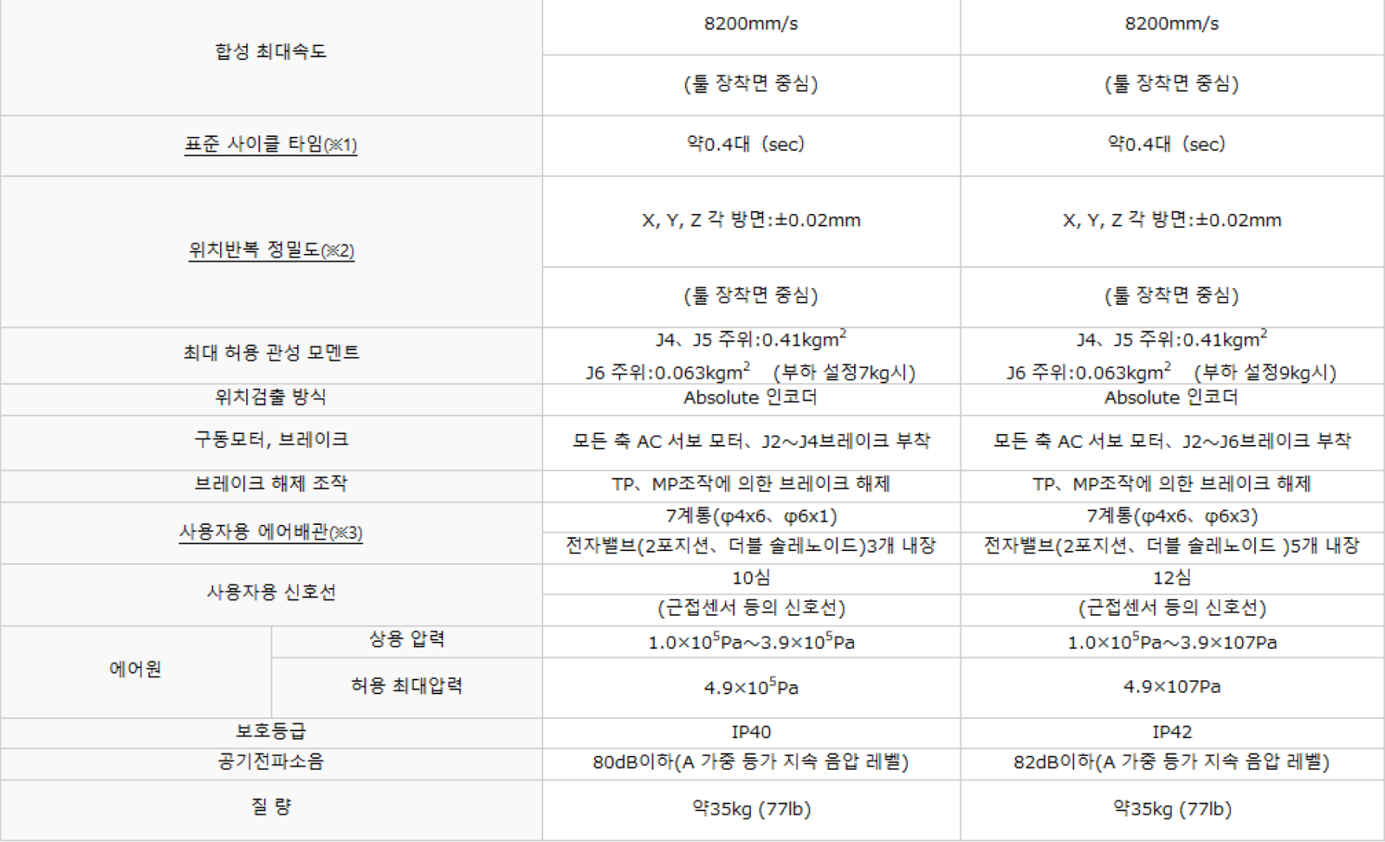 | 상세스펙 | 반복정밀도 : ±0.02mm 보호등급: IP40