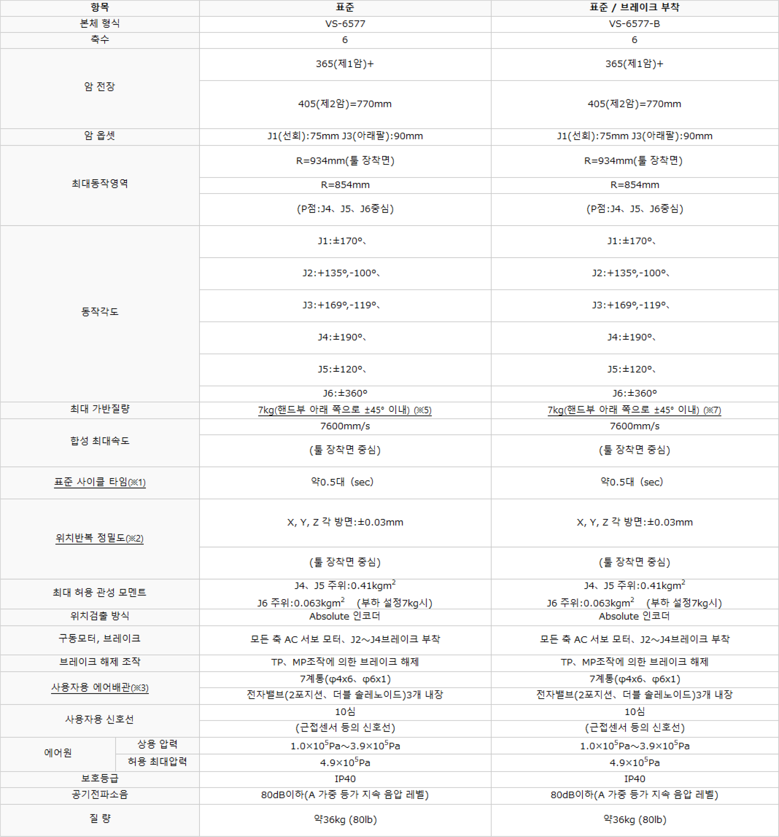 | 상품명(모델명) | DENSO VS-6577 (Payload : 7kg, Reach : 854mm) | ||