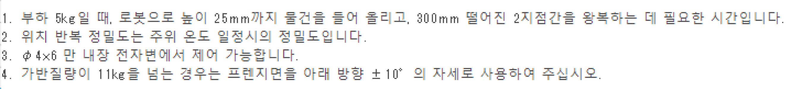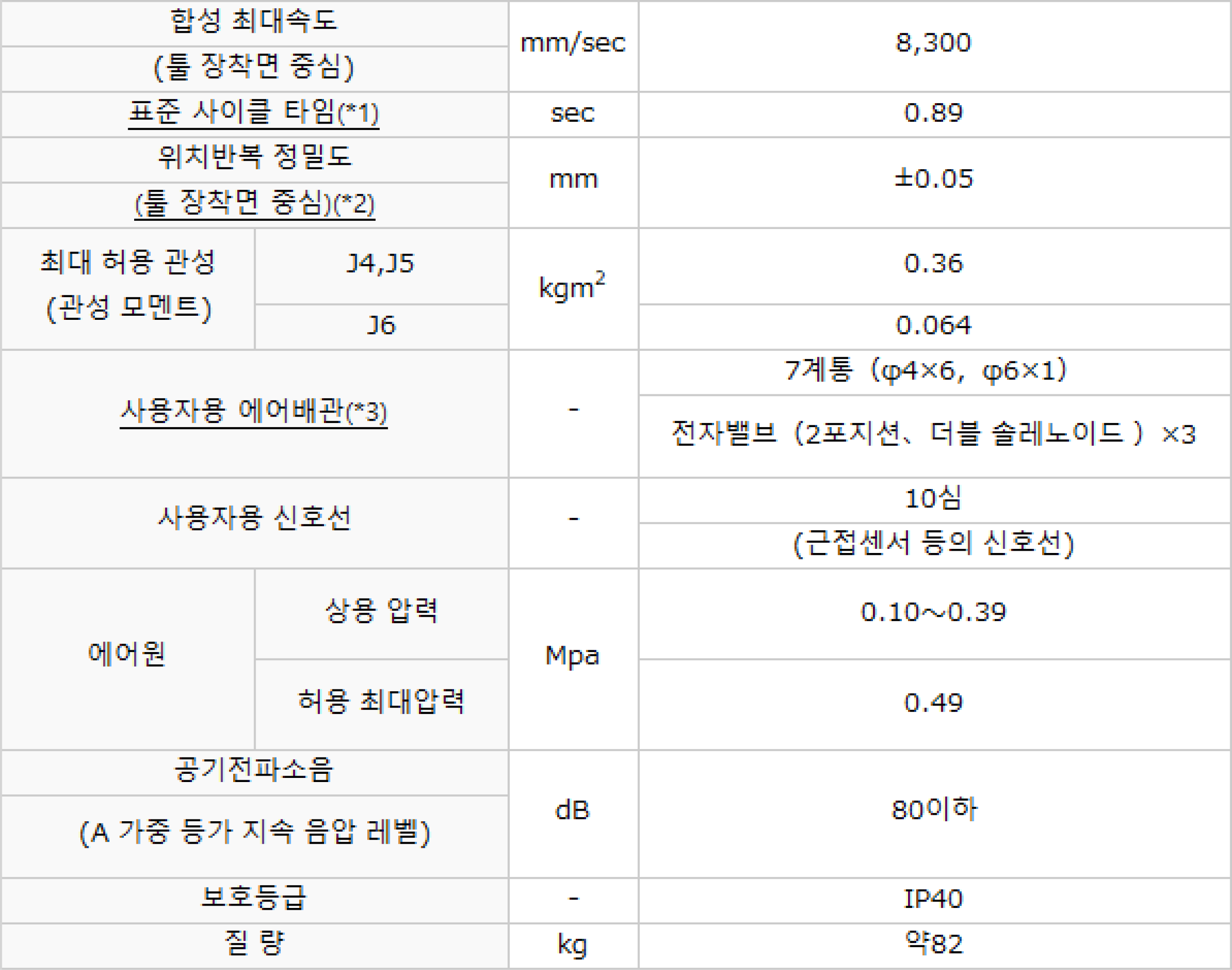 | 상세스펙 | 반복정밀도 : ±0.02mm 보호등급: IP40