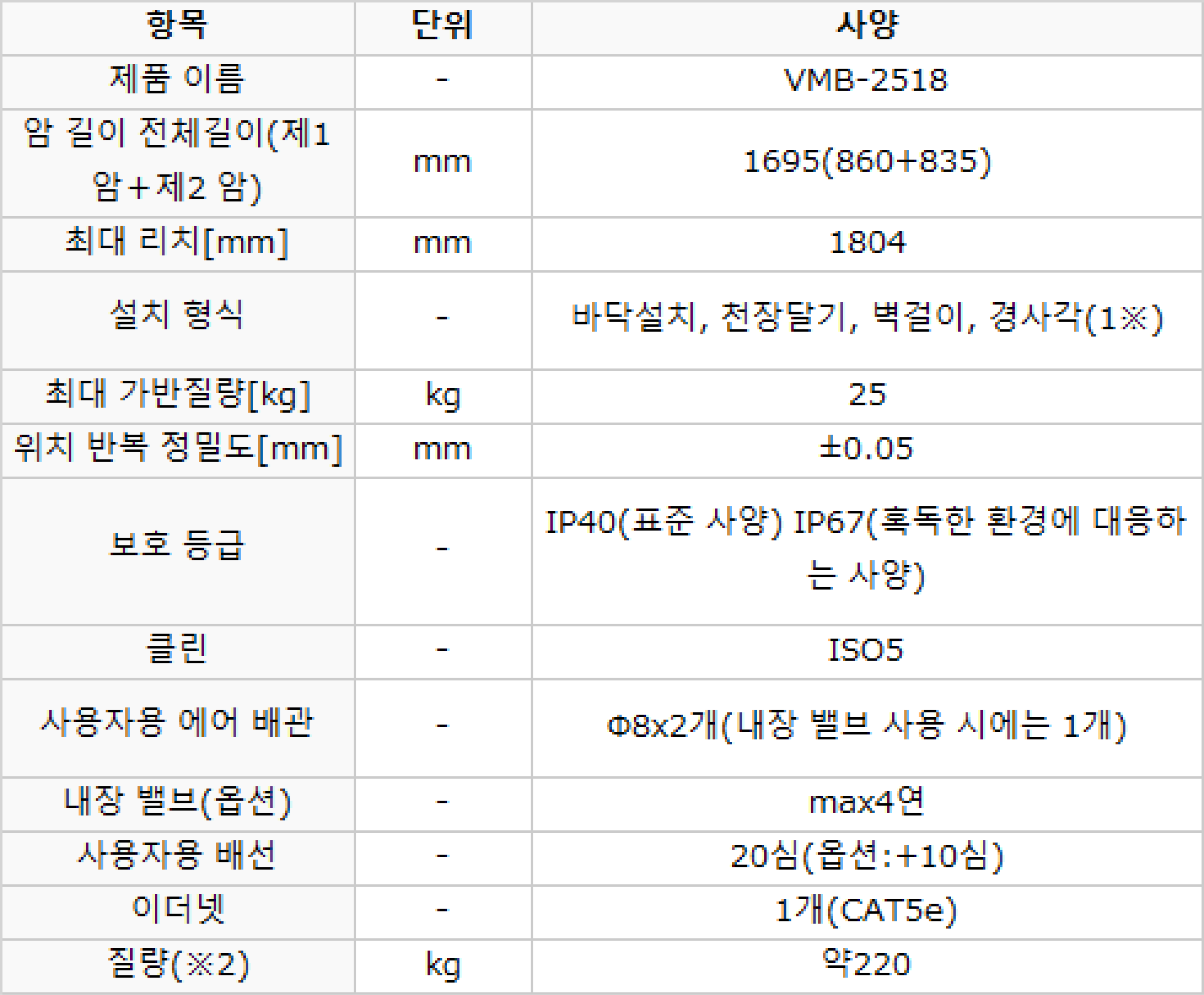 | 상세스펙 | 반복정밀도 : ±0.05mm