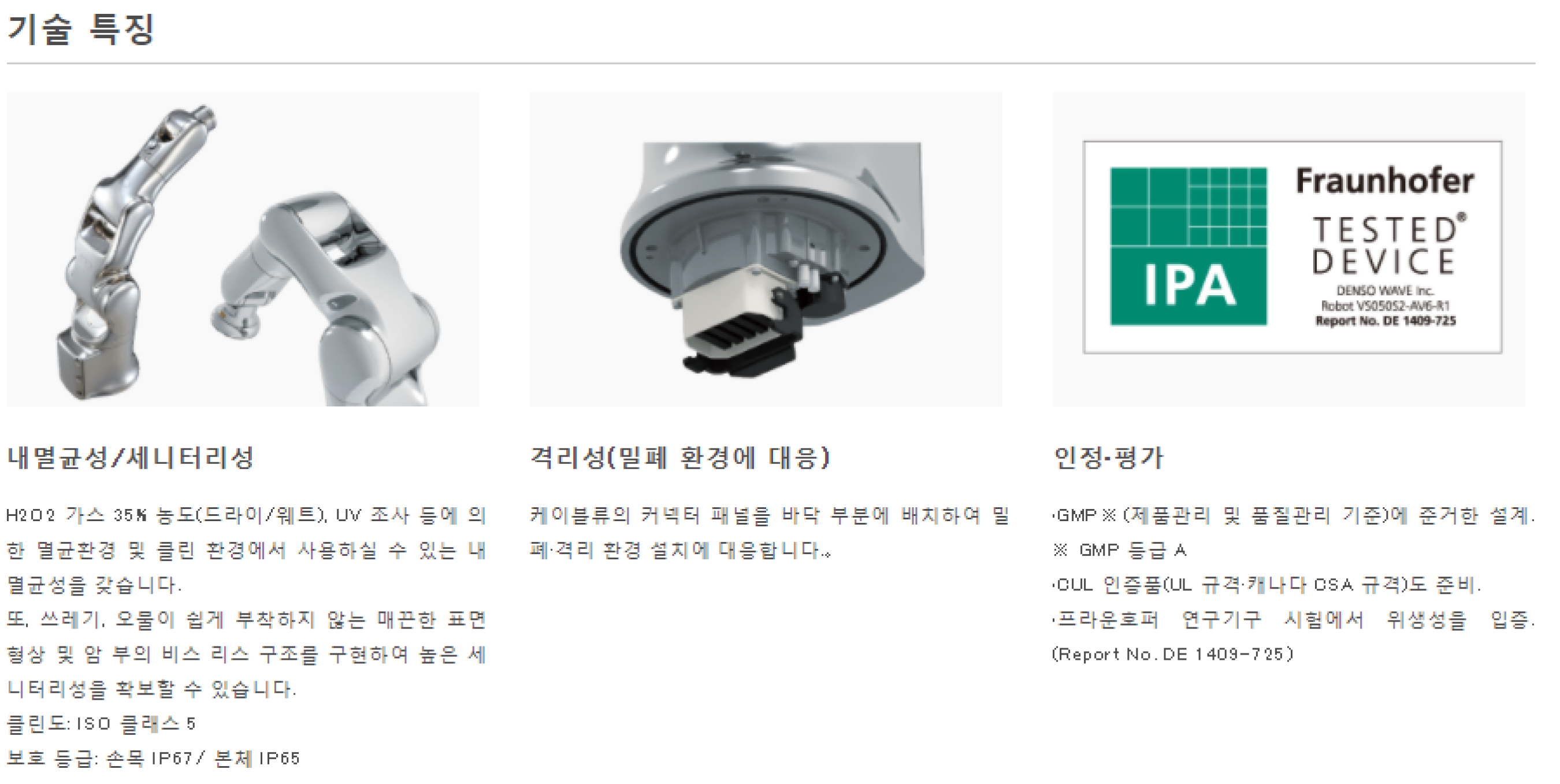 | 상세스펙 | 반복정밀도 : ±0.02mm 보호등급 : 손목 IP67 / 본체 IP65 | ||