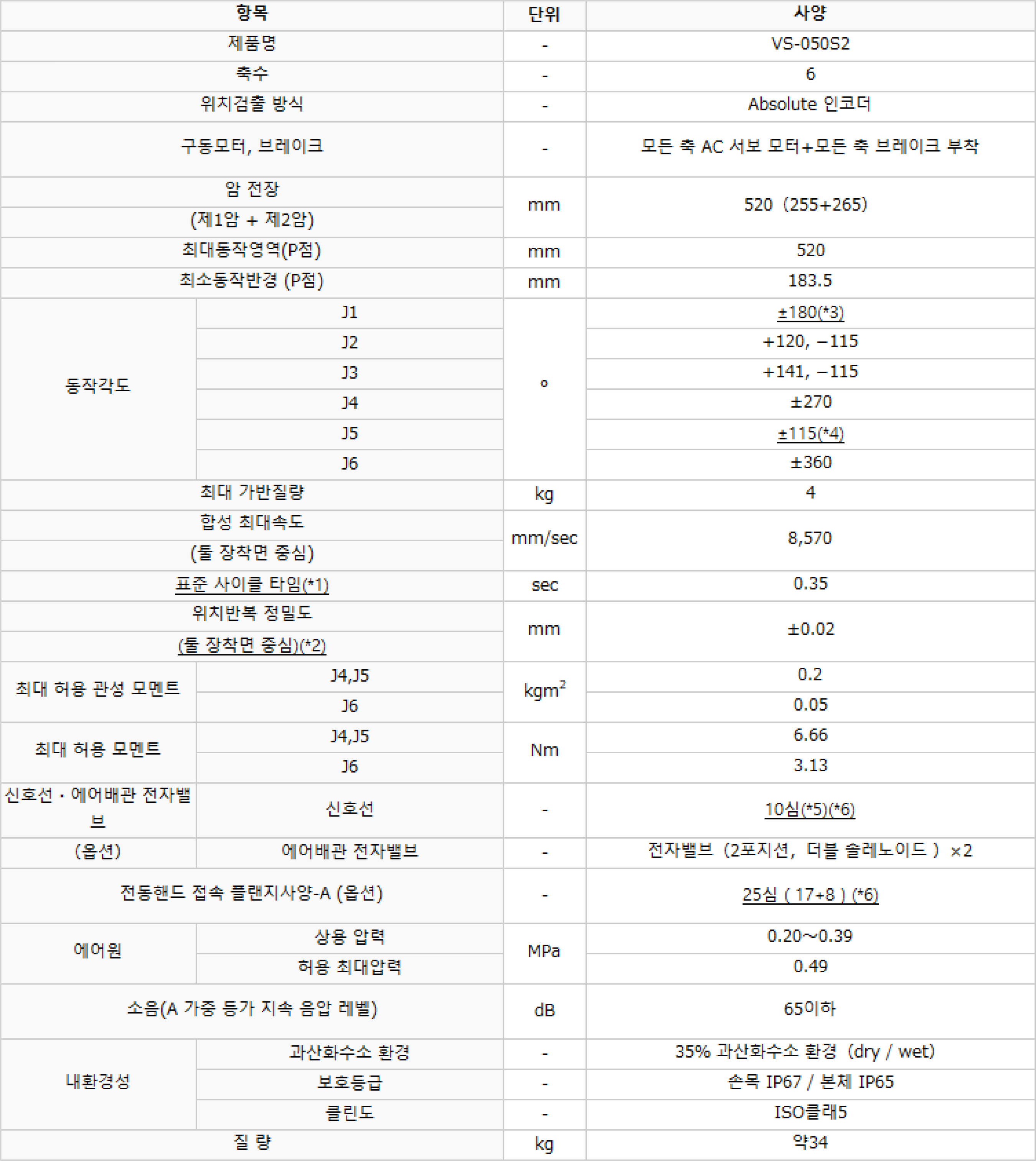 | 상품명(모델명) | DENSO VS-050S2 (가반하중: 4KG, 작업영역: 520mm) | ||