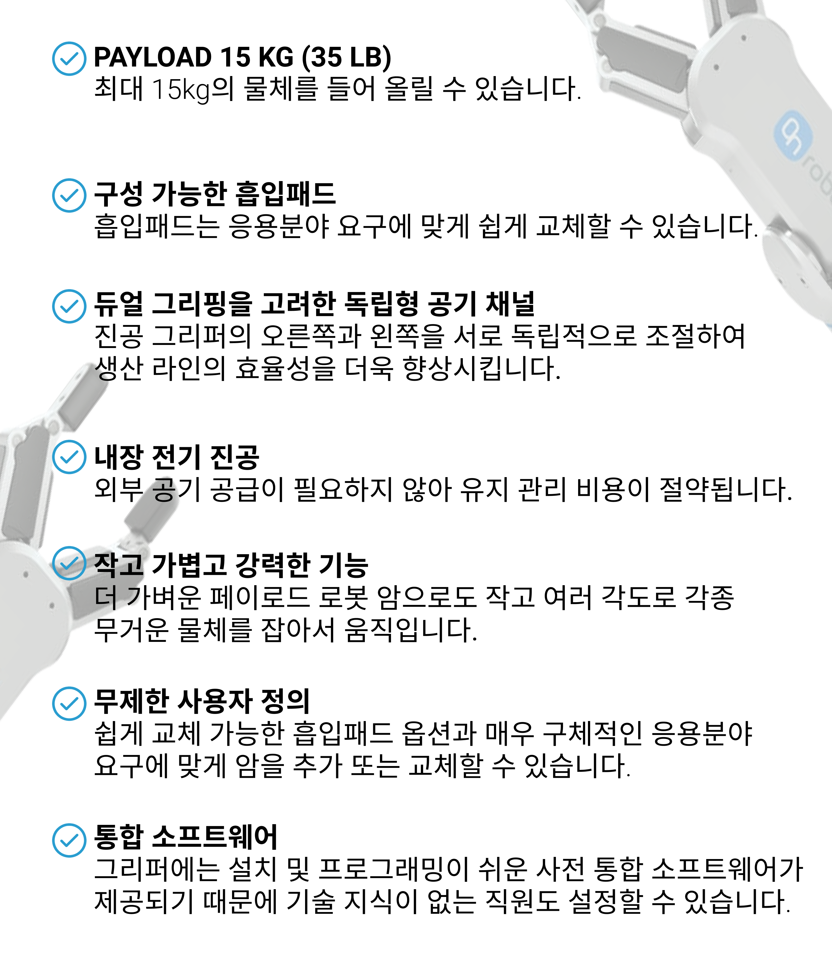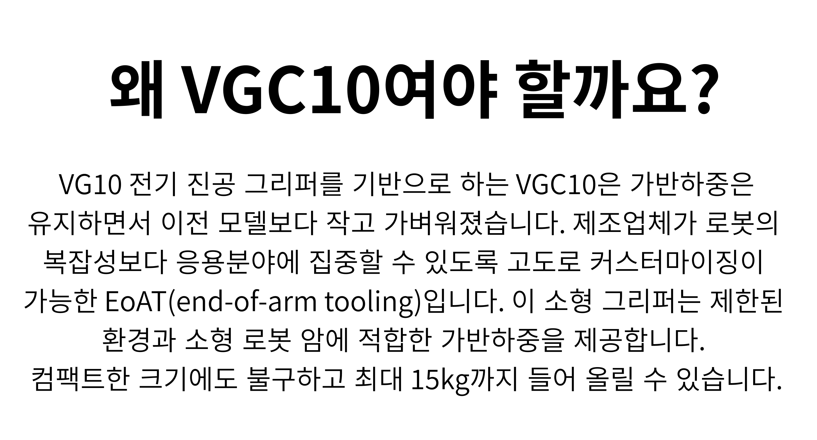 | 상품명(모델명) | OnRobot VGC10 (가반하중: 15kg) | ||