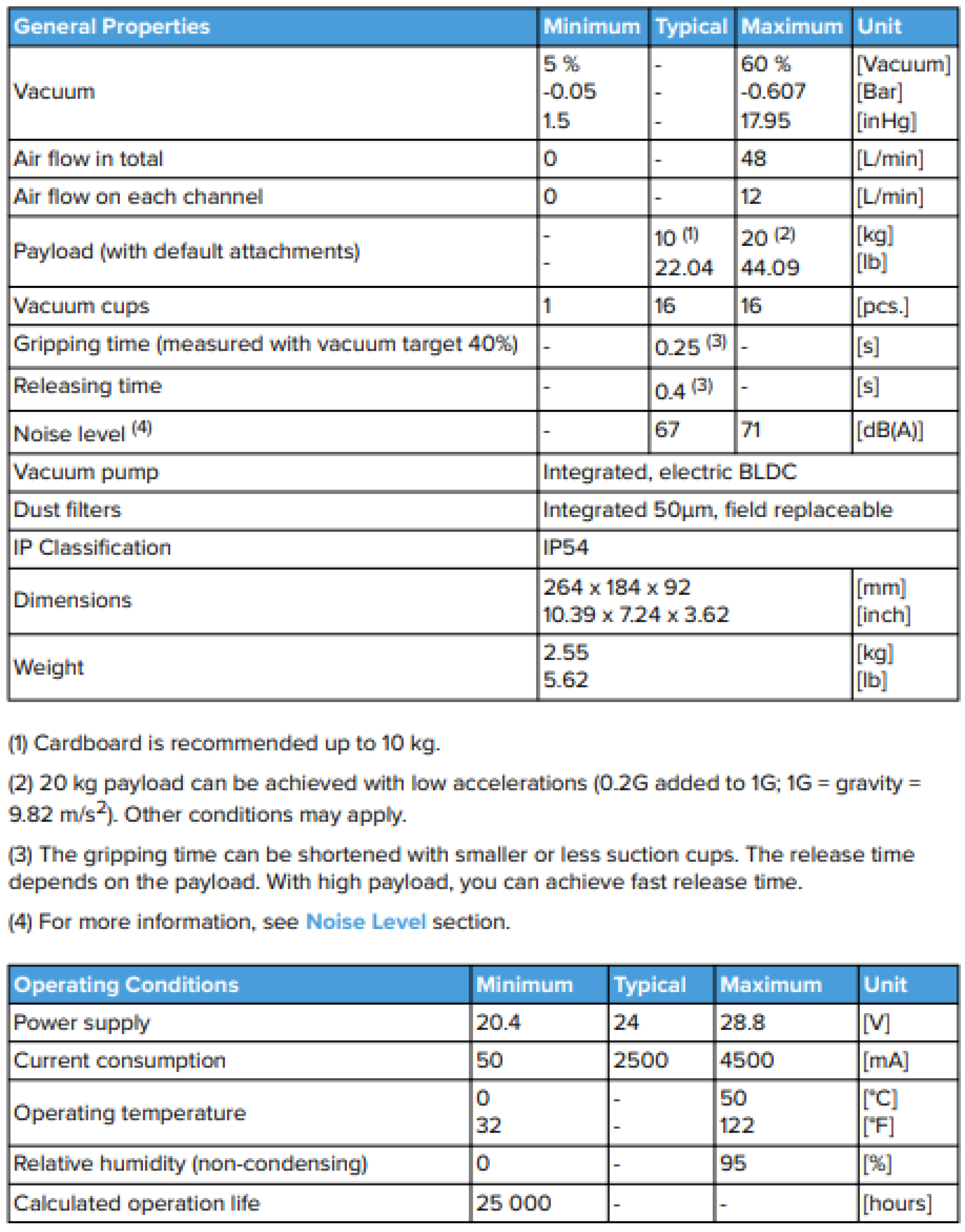 | 상품명(모델명) | OnRobot VGP20 (가반하중: 20kg) | ||