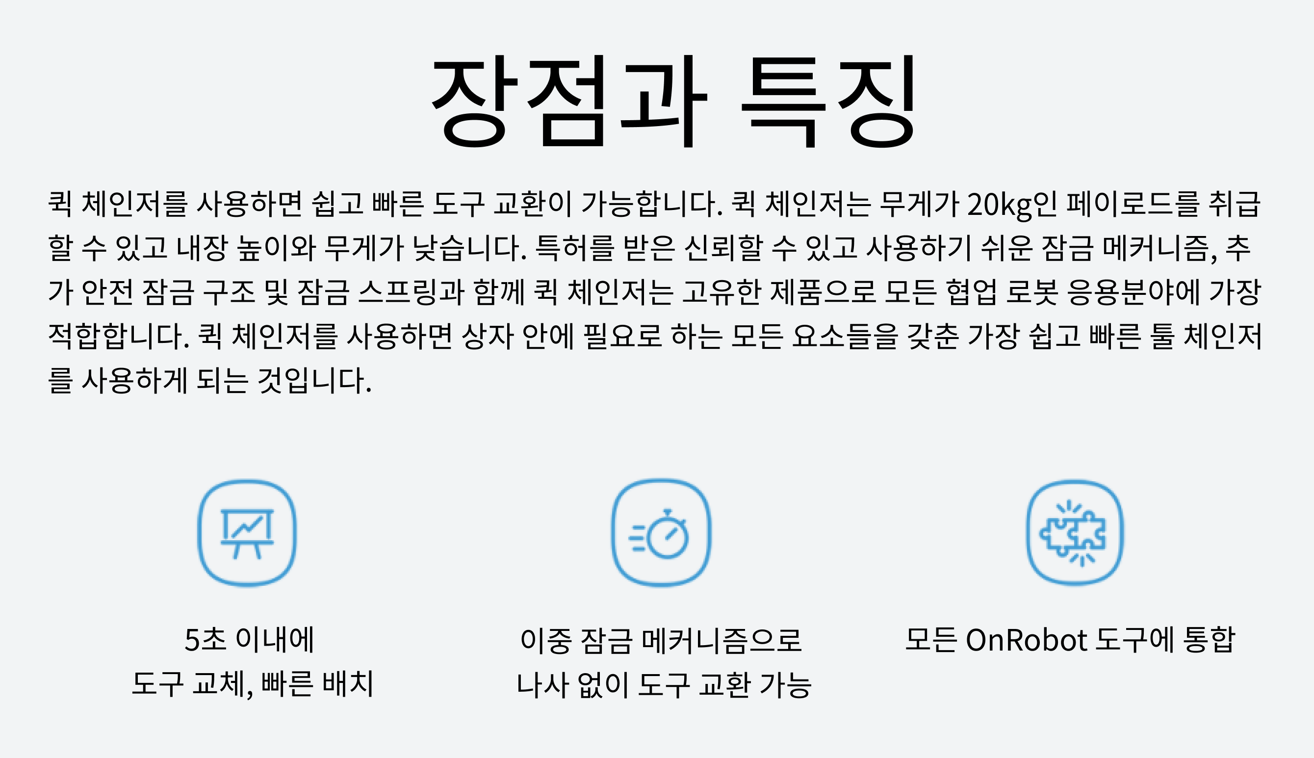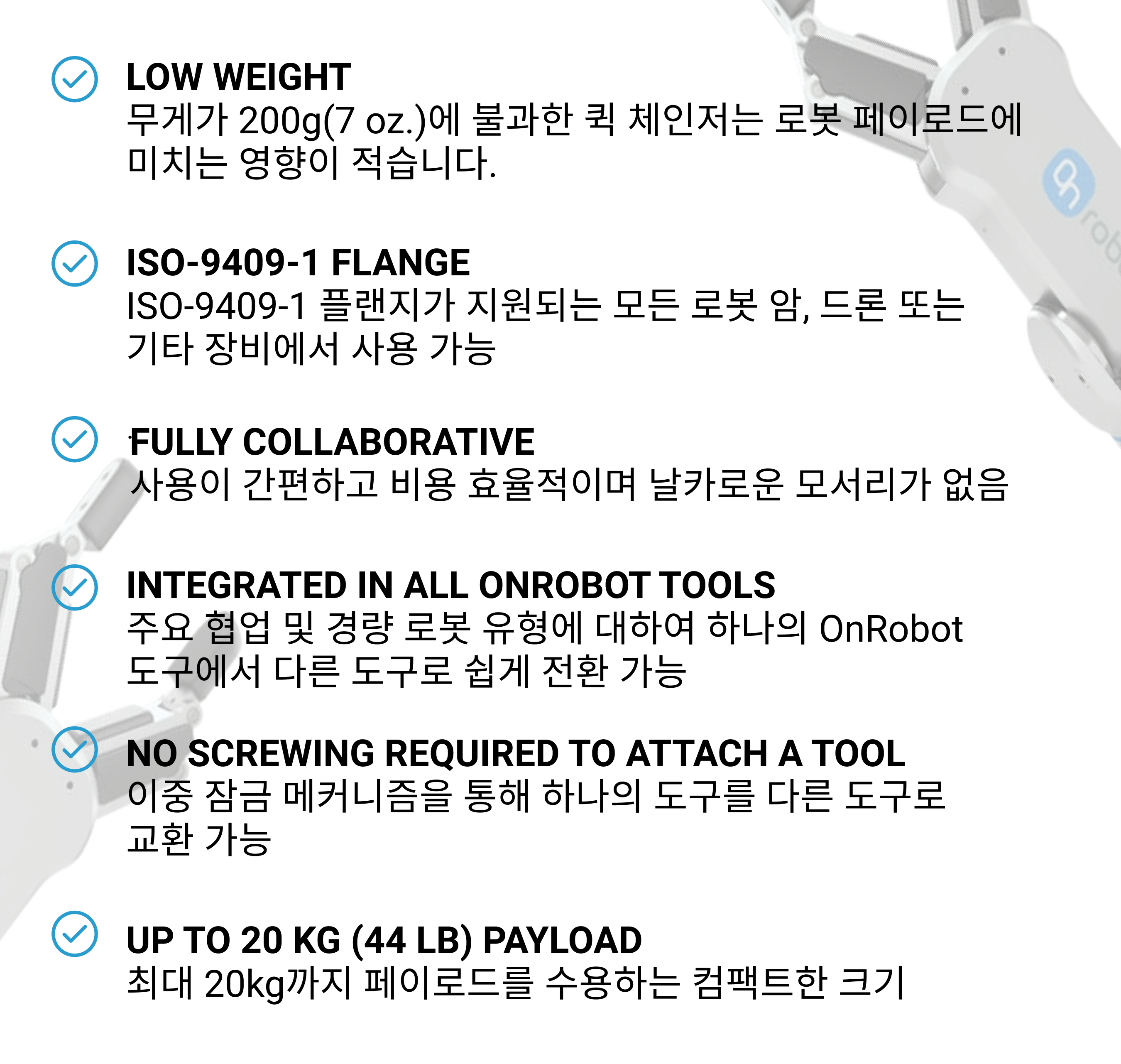 | 상품명(모델명) | OnRobot 퀵 체인저 (가반하중: 20kg) | ||