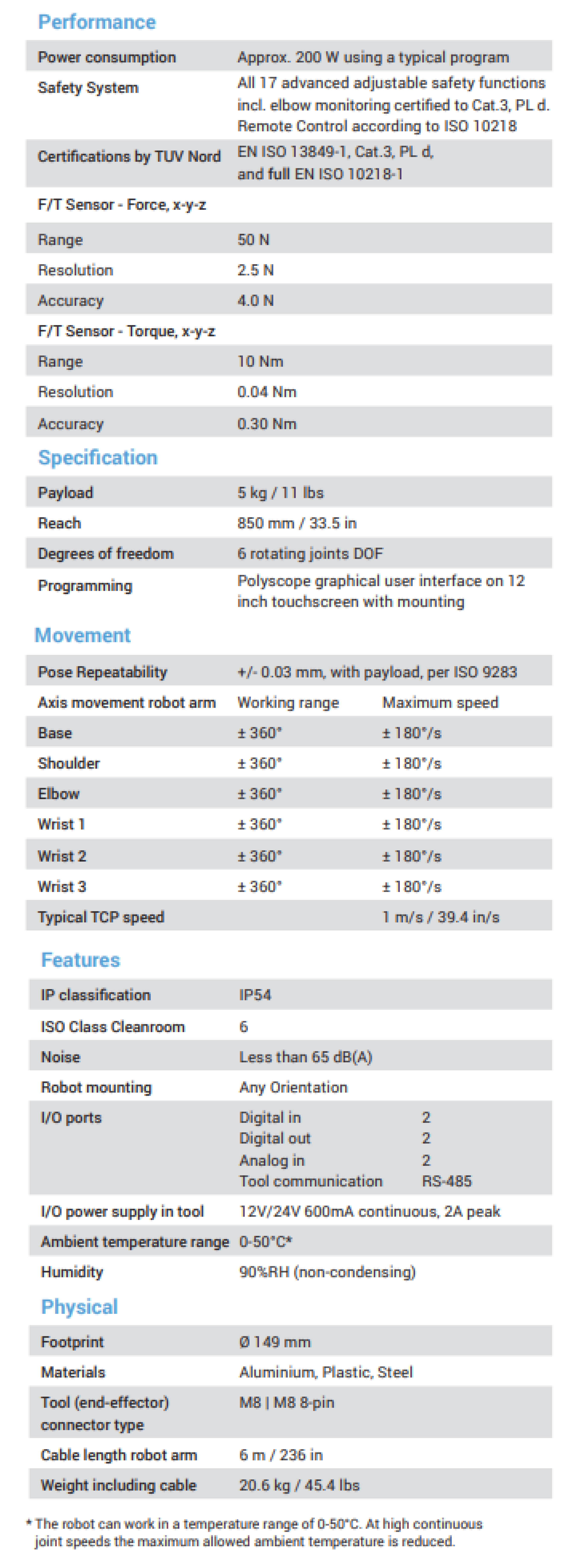 - 이러한 독특한 기능을 갖춘 UR5e 코봇은 오늘날 시장에서