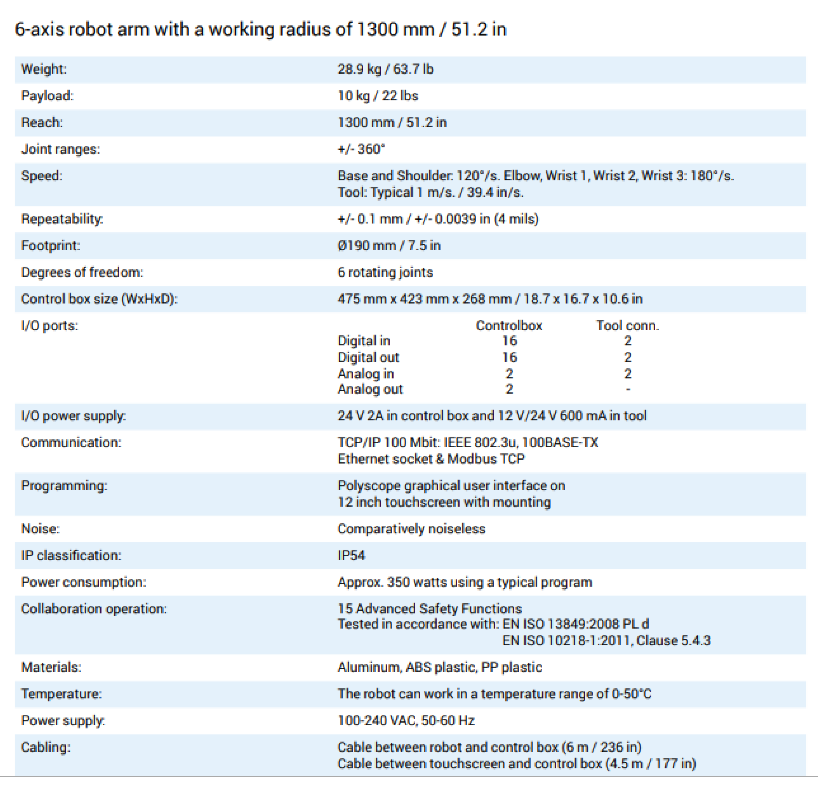 | 상품명(모델명) | Universal Robots 협동로봇 UR10 (Pay load : 10kg Reach : 1.300 mm) | ||