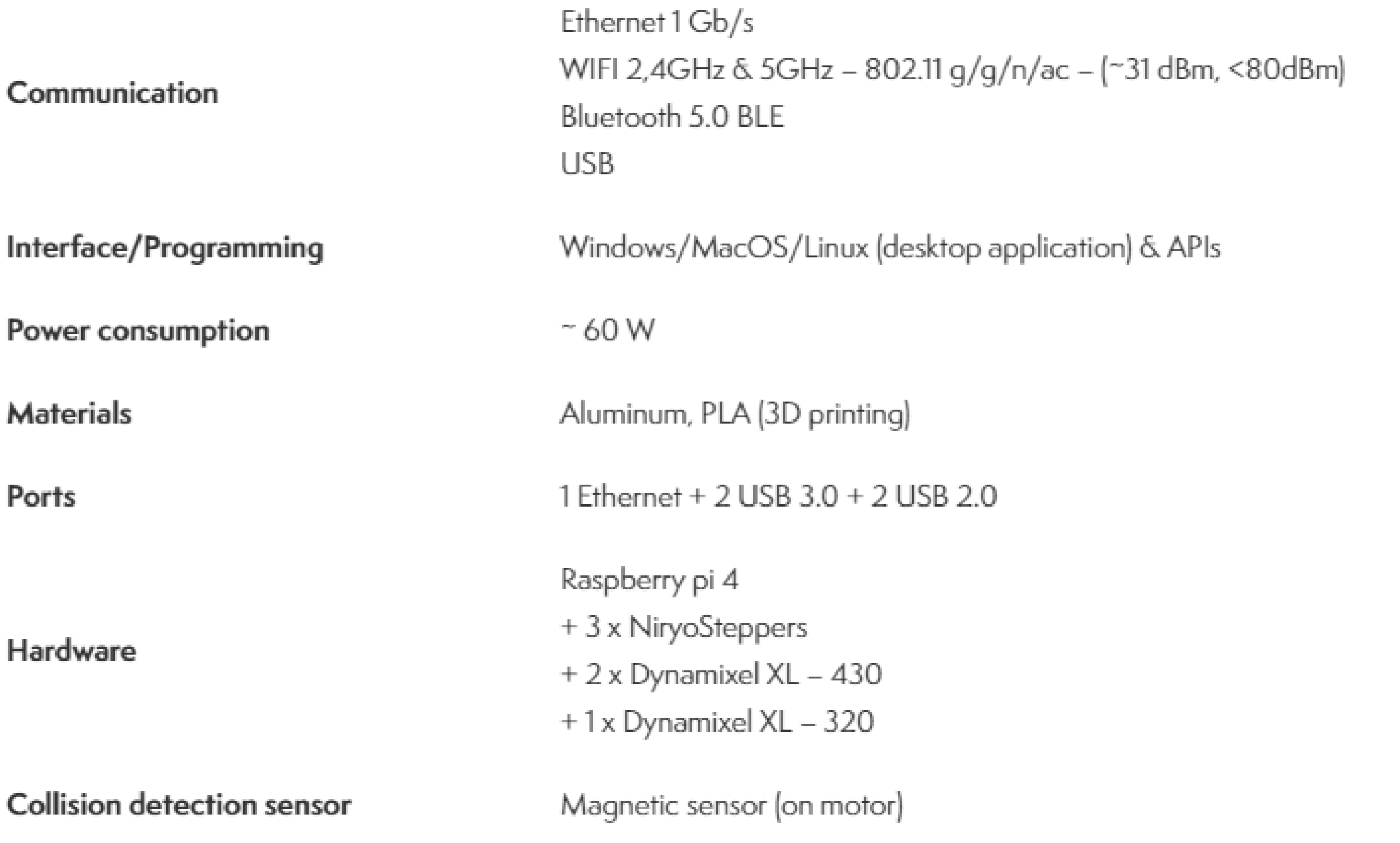 Niryo Ned (가반하중 : 0.3kg, 반복정밀도 : 0.5mm)
