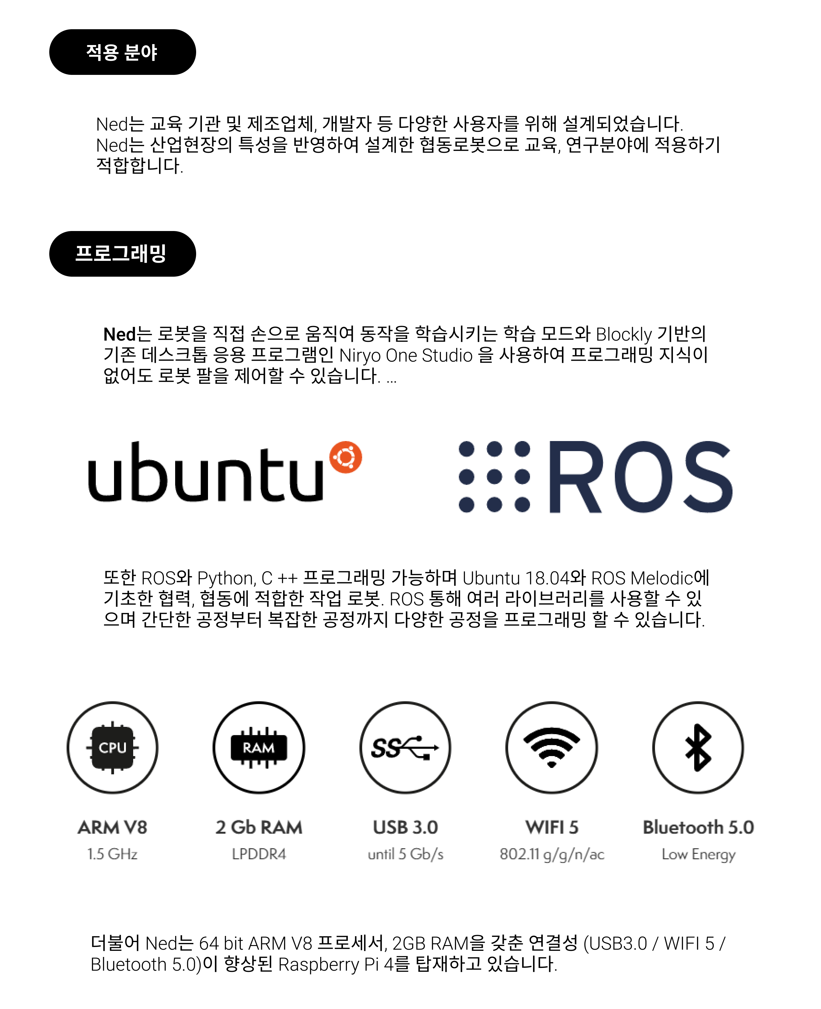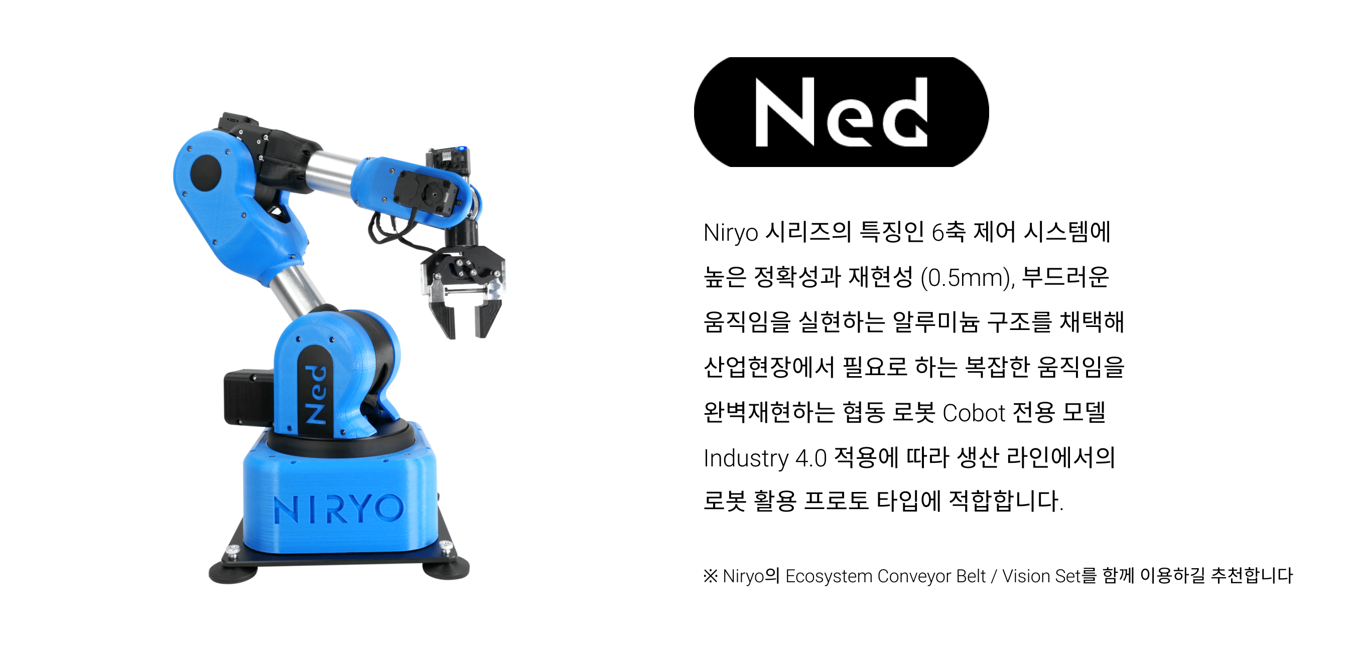 | 상품명(모델명) | Niryo Ned (가반하중 : 0.3kg, 반복정밀도 : 0.5mm) | ||