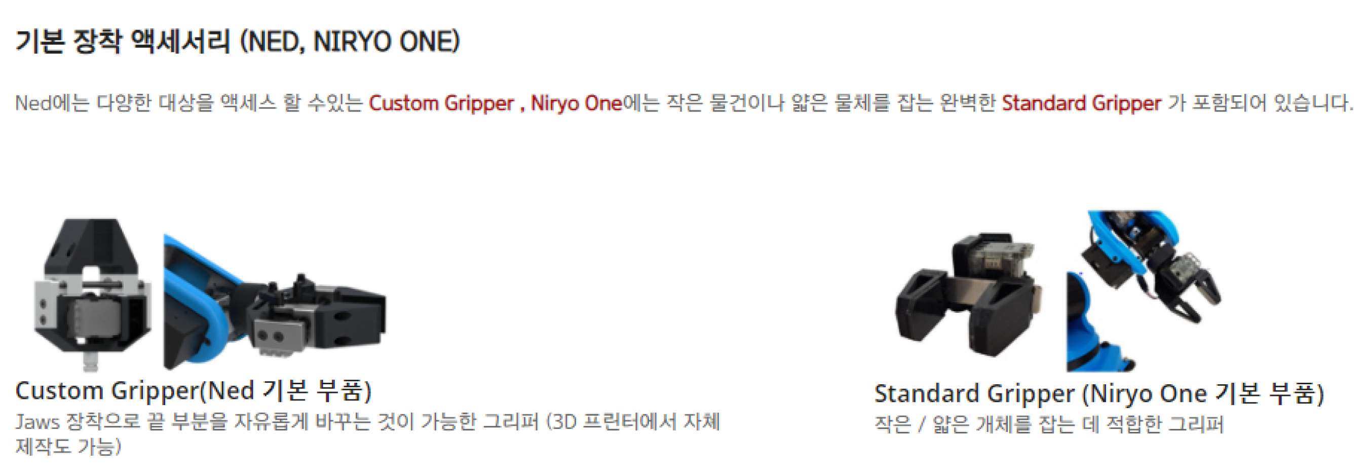· 엔드 이펙터의 3D 프린트 데이터 (STL files)을 Githab에서 다운로드 가능 하여, 로봇의 커스터마이즈가 가능