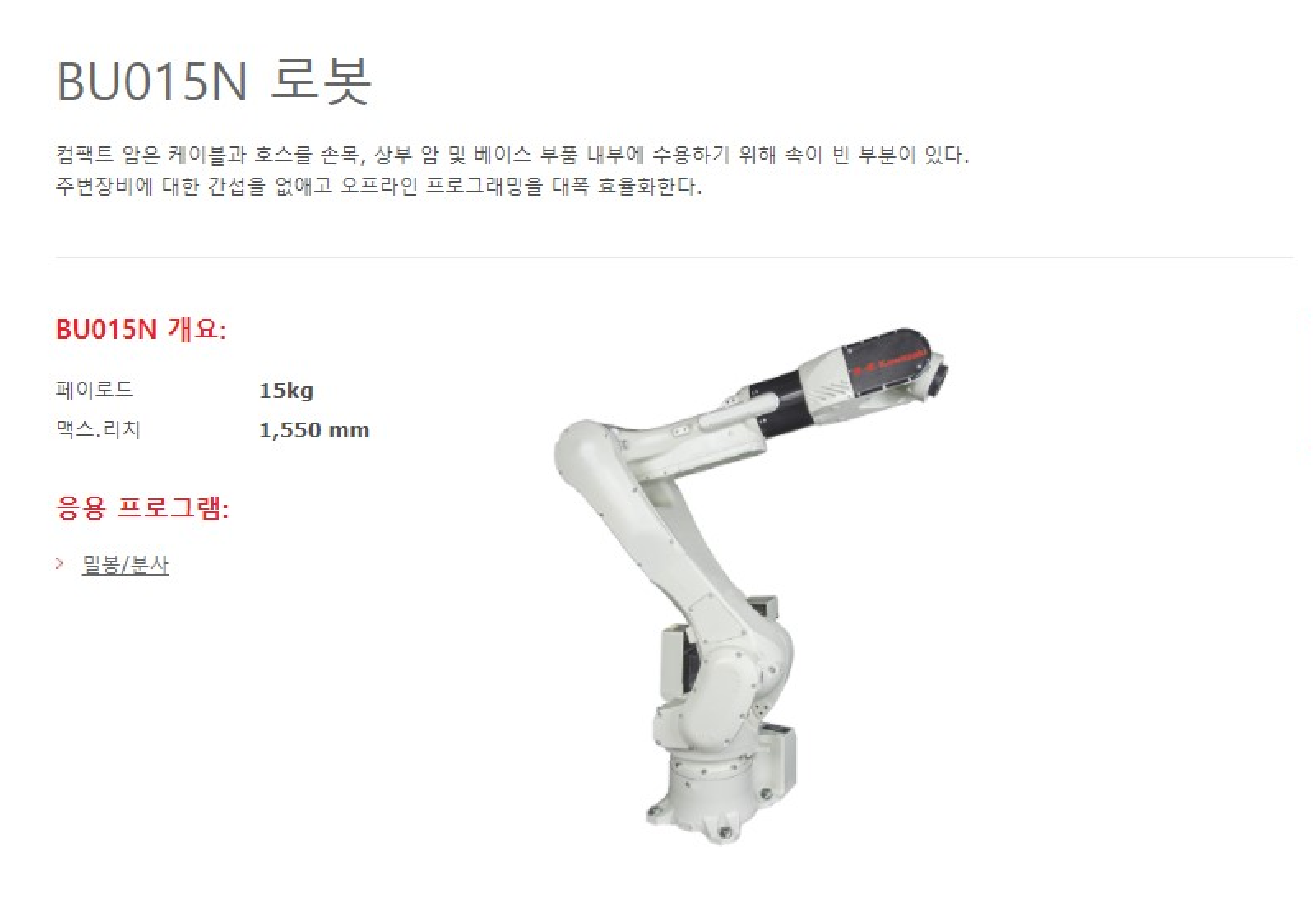 | 상품명(모델명) | Kawasaki 스폿용접용 로봇 BU015N (Payload : 15 kg , Reach: 1,550 mm) | ||