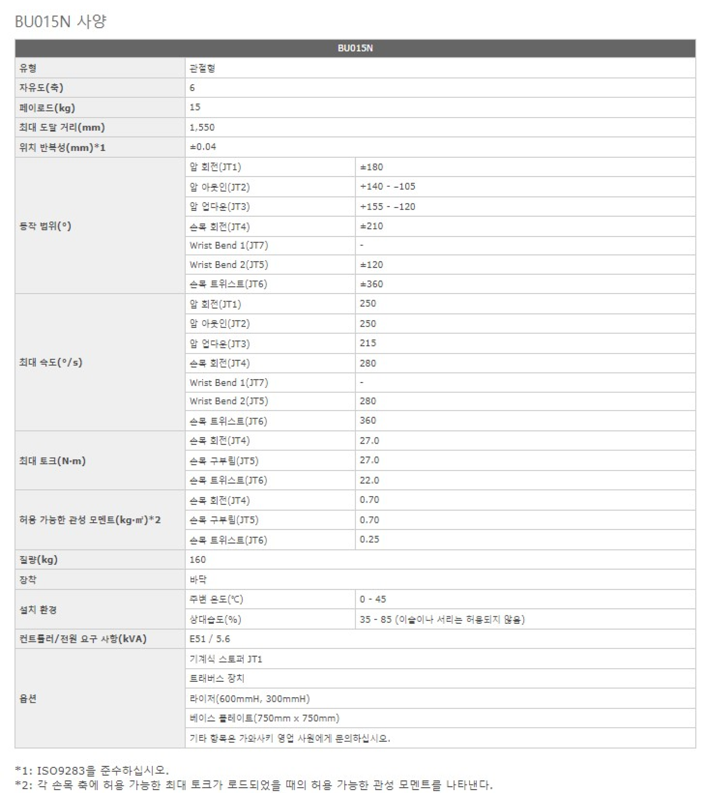 | 가반하중(Kg) | 15 | 작업반경(mm) | 1550 |