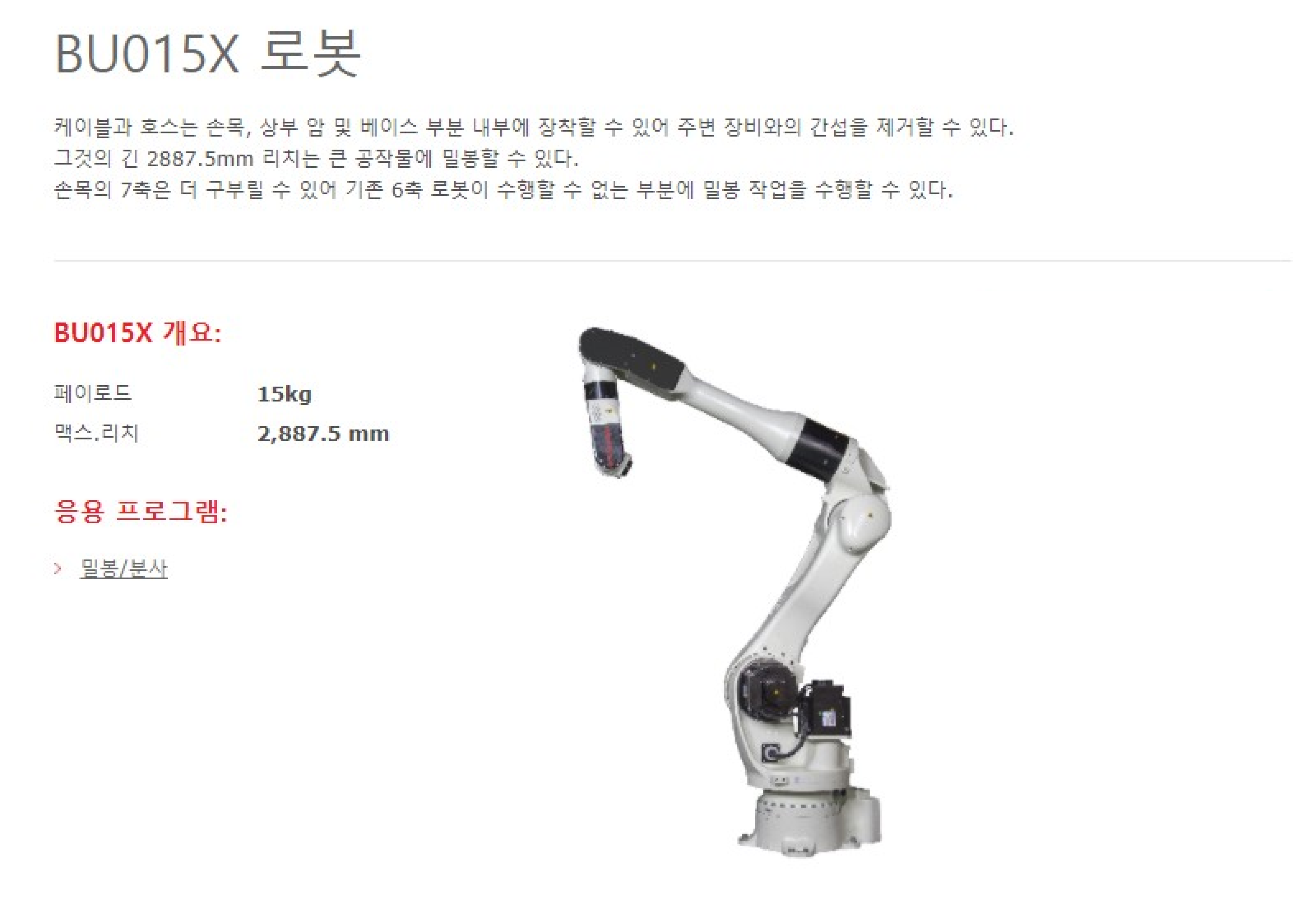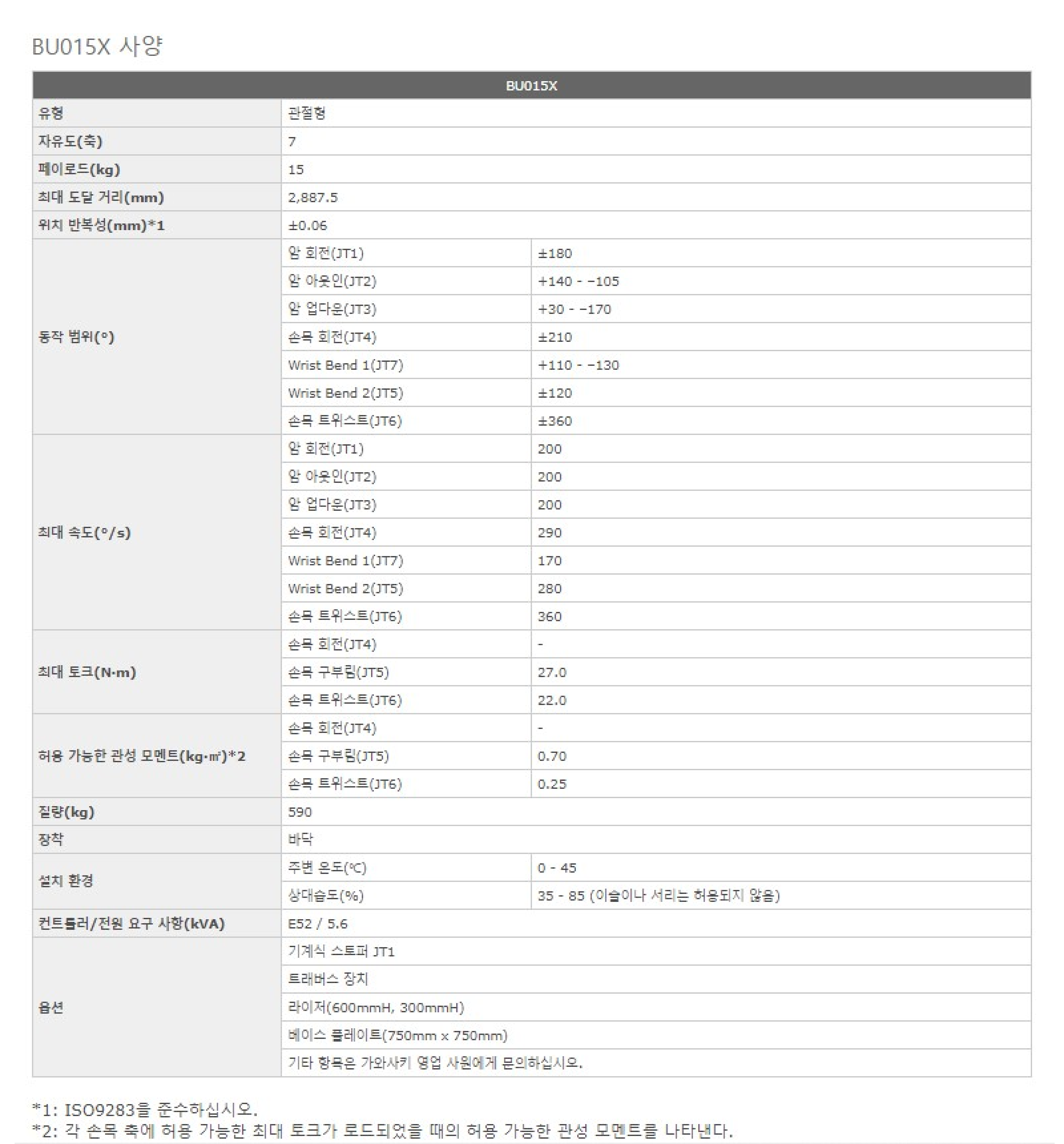 | 상품명(모델명) | Kawasaki 스폿용접용 로봇 BU015X (Payload : 15 kg , Reach: 2,887.5 mm) | ||