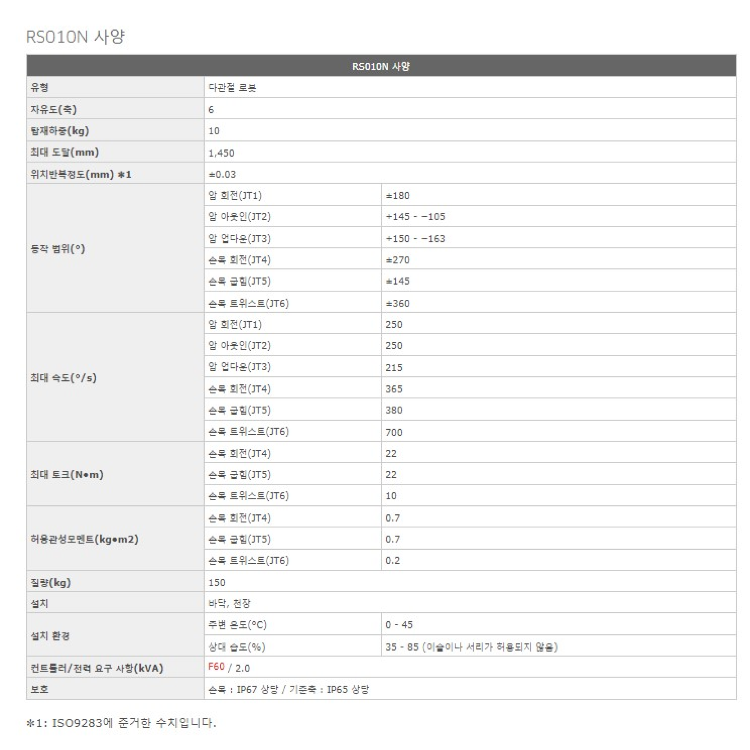 | 가반하중(Kg) | 10 | 작업반경(mm) | 1450 |